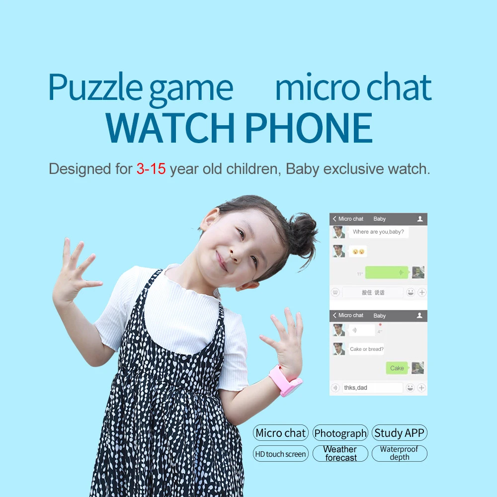 Розовые или синие водонепроницаемые умные часы с сенсорным экраном для детей 3-15 лет, могут обеспечить безопасность Ваших детей на пути в школу и из школы, получить связь с семьей в первый раз, когда им нужна помощь, предоставьте некоторую базовую информацию о повседневной жизни и маленькой игре-паззле для развлечения и обучения. Это очень образец для работы, просто нужно отсканировать qr-код и загрузить приложение для подключения к телефону.