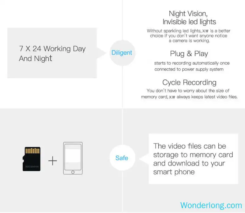 Модель: XW Формат видео: HD 4K/1080P Поддержка памяти: 8 - 128G Объем памяти: около 6 г/час Обнаружение движения Рамки: 25*30/сек. Формат видео: AVI Вес нетто: 9 г Товар Размеры: 3,0x1,0x3,6 см