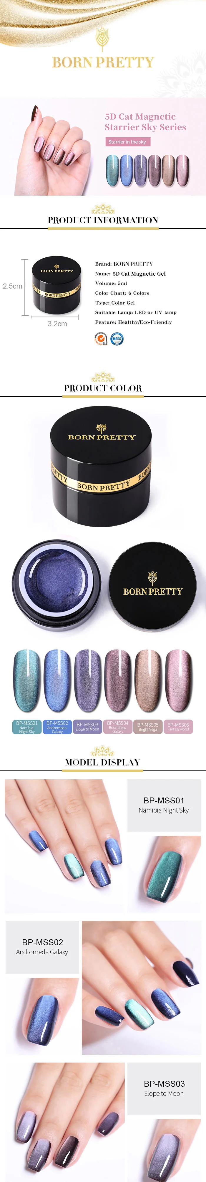 1 коробка/2 коробки/3 коробки/6 коробок5 мл BORN PRETTY 5D/9D кошачий Магнитный Гель-лак