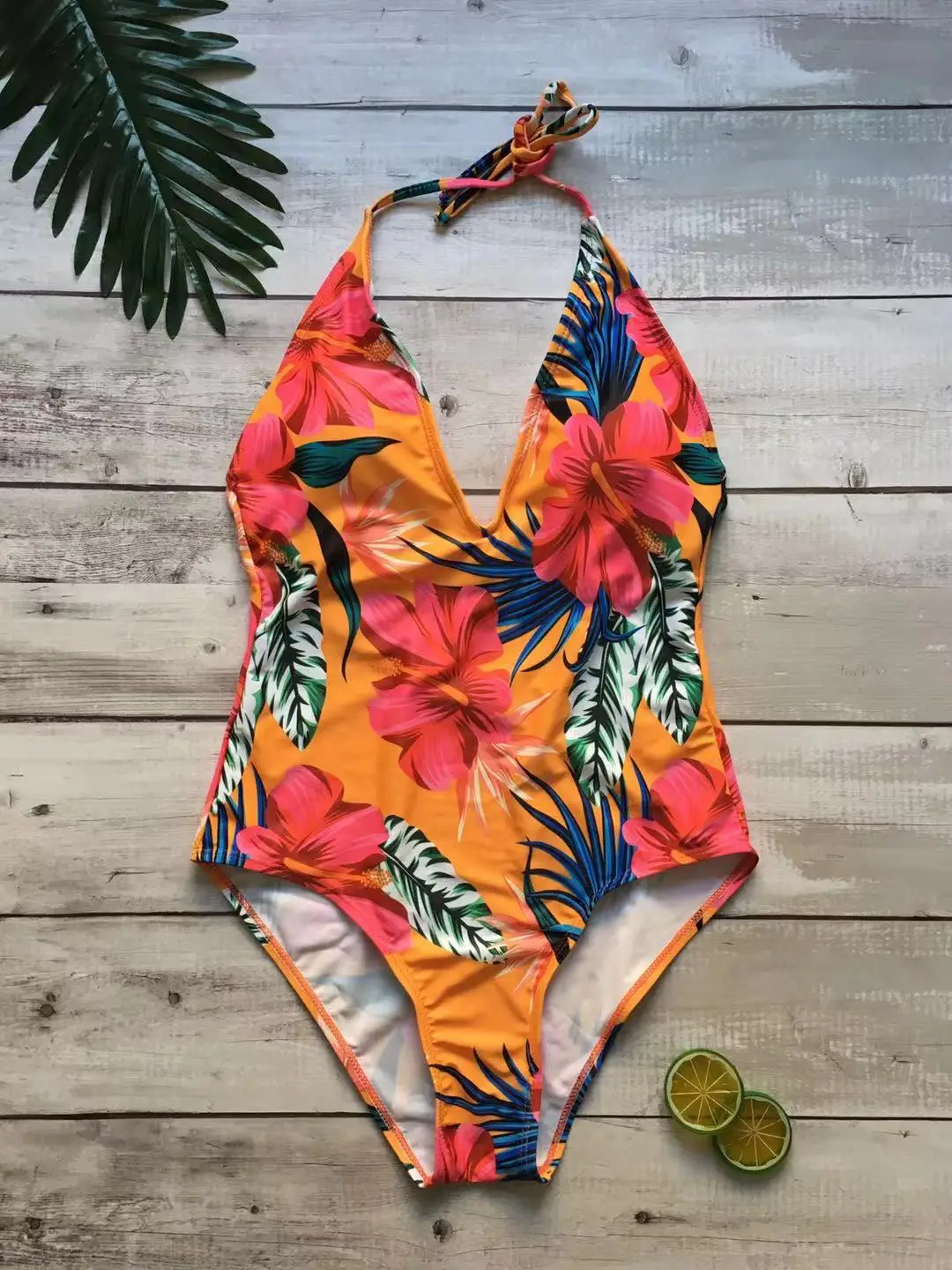 Сексуальный цветочный принт с вырезами спереди, с пряжкой, купальник с высокой талией, монокини, пуш-ап, одежда для плавания, Женский цельный купальный костюм