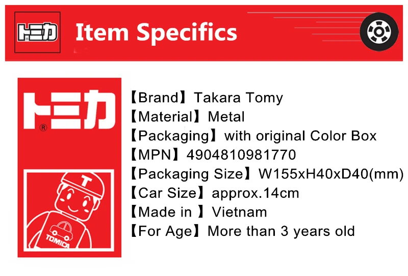 Номер товара. : 4904810981770 Производитель: TAKARATOMY Бренд: Tomica Размер посылка: W156 x H41 x D39 мм Целевой возраст: 3 года ~