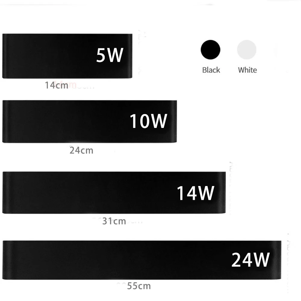 Размер: около 14/25/40/55 Материал корпуса: алюминий Мощность: 5 Вт (14 см), 10 Вт (25 см),16 Вт (40 см), 24 Вт (55 см) Цвет: черный, серебристый, золотой Цветовая температура: холодный белый, теплый белый Светильник источник света: светодиодный Номинальное напряжение: AC90-265