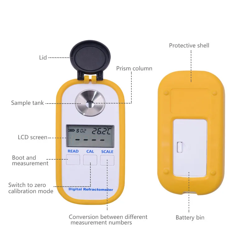 Этот Цифровой рефрактометр применяется для посадки фруктов, испытаний на производство напитков, испытаний на производство варенья, промышленной резки жидкости и промышленной резки масла и т. Д.