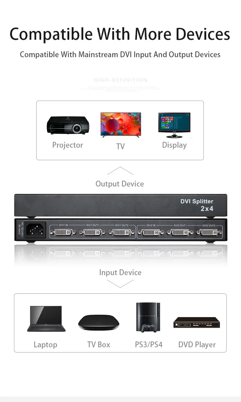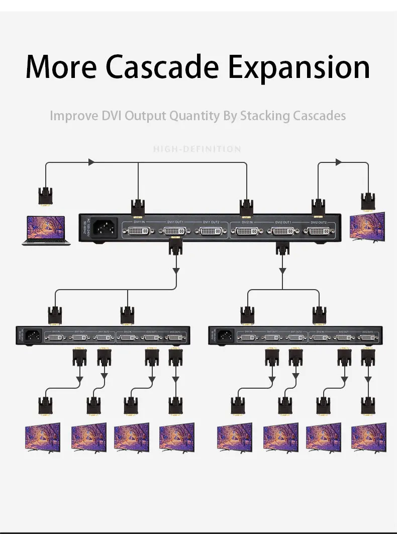 6 портов HD DVI Splitter 2x4 AMS-D2S4 vs dtech DT-7024 имеет качество изображения 1080p для absen led stage backdrop screen