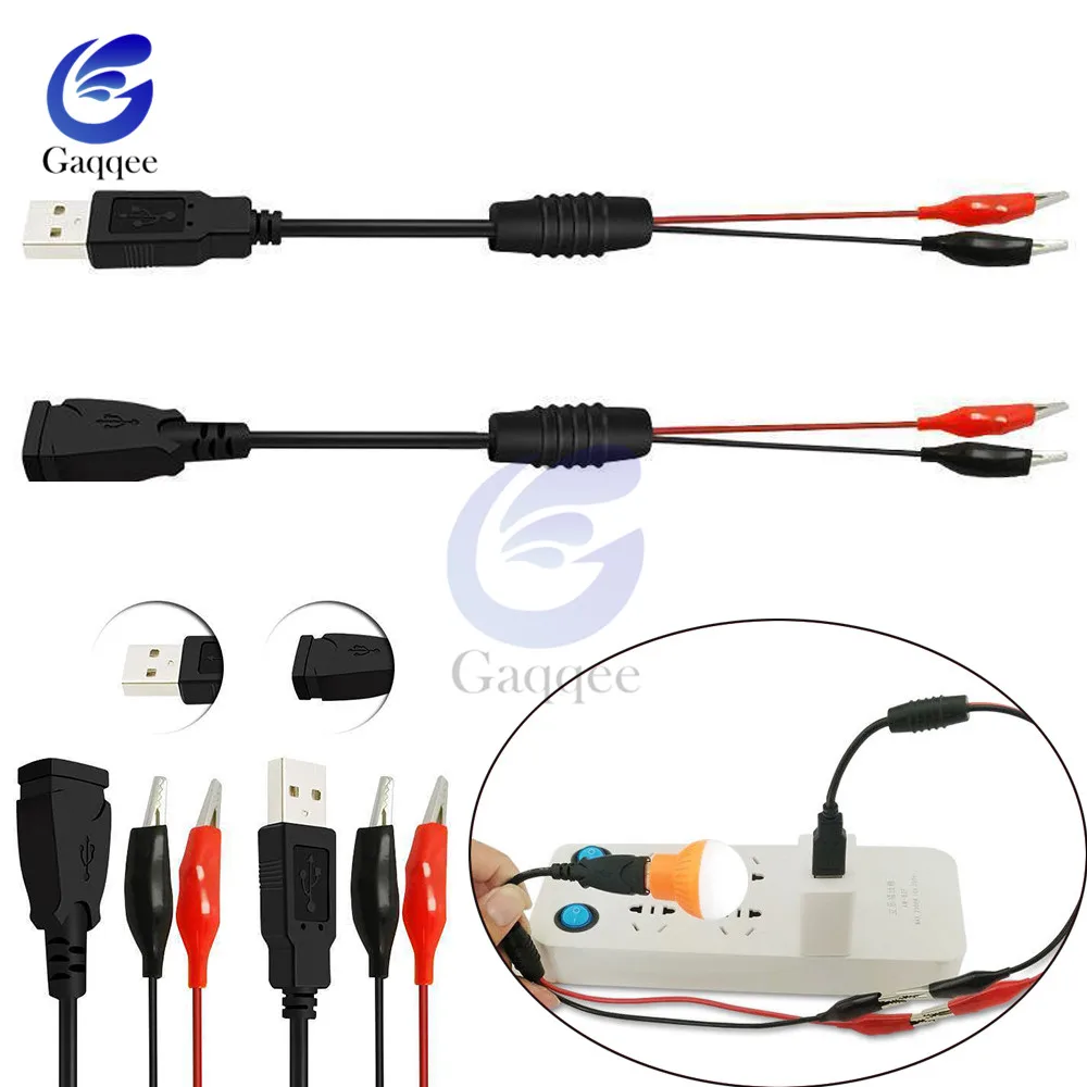 Тестовые провода с двумя штыревыми зажимами типа «крокодил» к usb-кабелю-адаптеру 30 см 1 шт.
