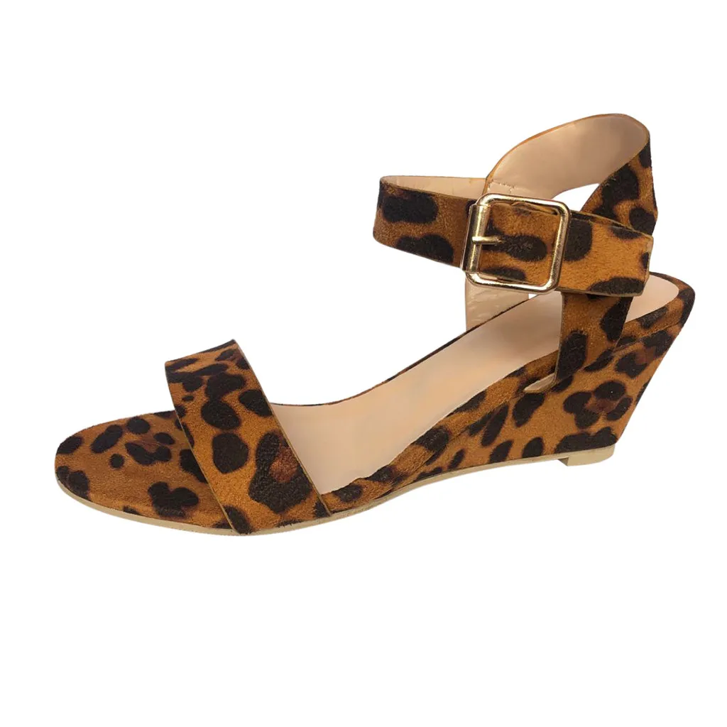 Женские Модные леопардовые сандалии на танкетке с ремешком и пряжкой в римском стиле