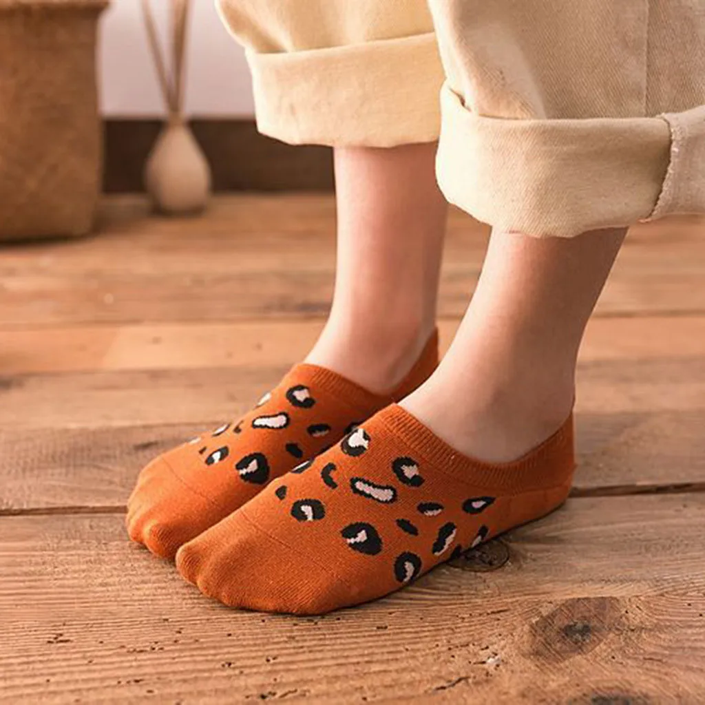 Бесплатная доставка; удобные леопардовые хлопковые носки без страуса; женские тапочки; короткие носки; впитывающие пот носки-башмачки