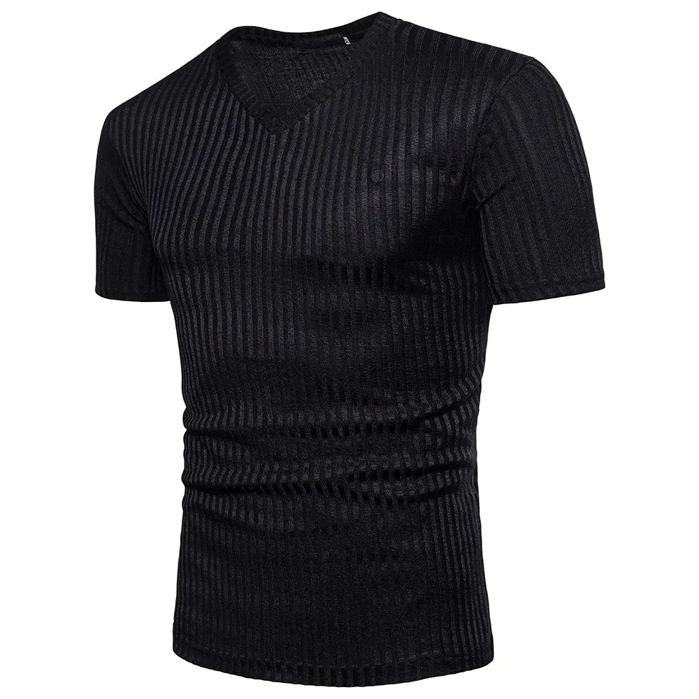Модная мужская блузка с коротким рукавом, Повседневная рубашка с v-образным вырезом