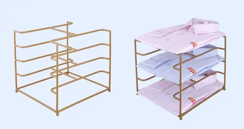 Металлическая футболка лоток рубашка дисплей полка пальто Выставка демонстрация стенд дисплей стол Опора стол рубашка органайзер для хранения многослойный