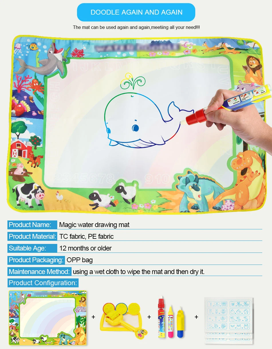 1. Заполнение ручек без красителя. Он бесцветный, безвкусный и нетоксичный. Который является чистым и безопасным для детей и детей не будет окрашивать дом. 2. Цвет на коврике исчезнет автоматически, его можно использовать повторно, чтобы удовлетворить потребности ребенка в живописи и использовать свое воображение 3. Коврик для каракулей изготовлен из высококачественной и экологически чистой ткани, которая может быть многократно окрашена и сохранена.