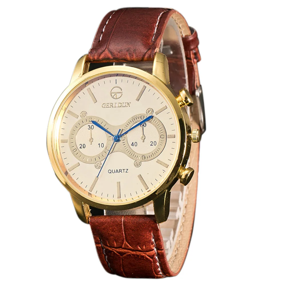 Модные мужские часы с кожаным ремешком, спортивные аналоговые кварцевые наручные часы