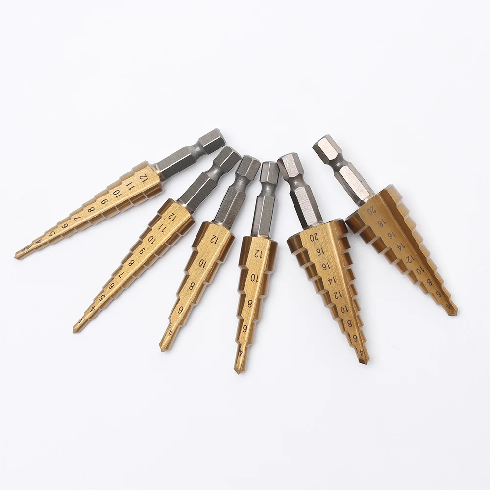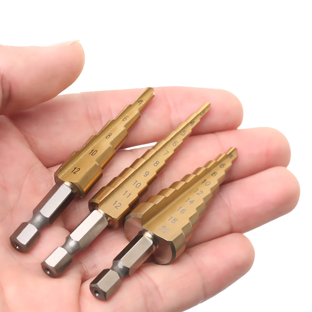 DAYFULI 1/3 шт. Быстрорежущее титановое покрытие ступенчатое сверло Металл 3-12 мм 4-12 мм 4-20 мм конусная резка Высокоскоростная сталь для бурения древесины электроинструменты