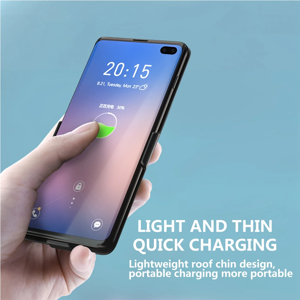 100% новый бренд. Легкая и компактная, быстрая зарядка Большая емкость 7000 мАч. За пределами камеры, дайте камере персональную защиту, предотвращает появление царапин Не нужно приносить линию, одна кнопка зарядки Совместимость с: для Samsung Galaxy S10 Plus Описание: Емкость: 7000 мАч Материал: пластик Количество: 1 шт. Совместимость с: для Samsung Galaxy S10 Plus, опционально Упаковочный лист 1 x чехол для зарядного устройства