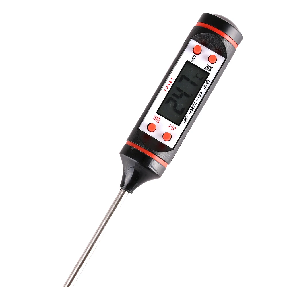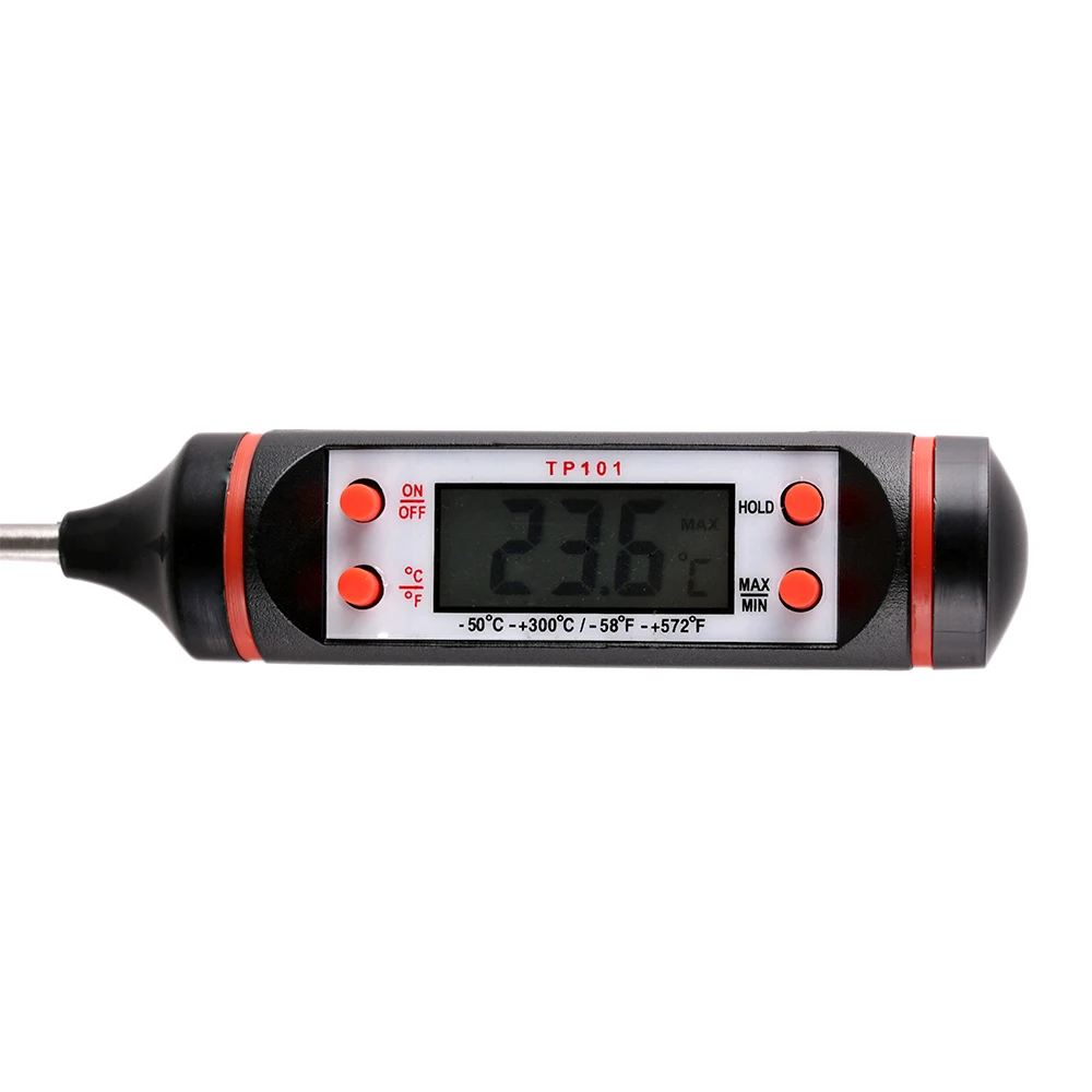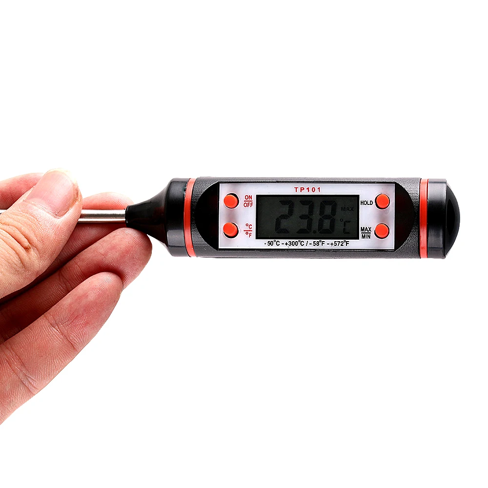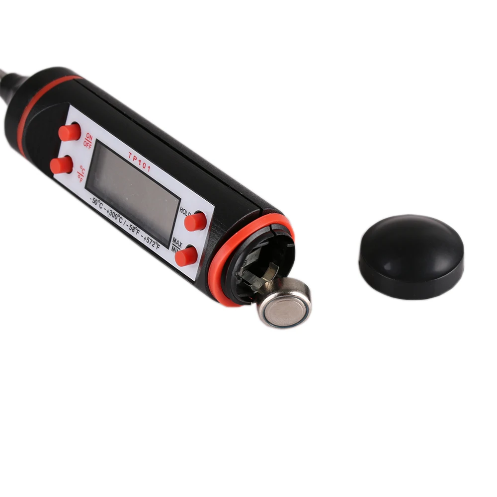 Диапазон измерений:-50 °C + 300 °C (-58 °F + 572 °F) Ощущение и отображение низкого заряда батареи Память последнего измерения 15 минут Автоматическое отключение для энергосбережения (опционально) °C и °F дисплей выбирается 100% новый и высокое качество Цвет: черный Длина: 225 мм Питание от 1 аккумулятора AG13 Содержание упаковки: 1 х цифровой термометр (батарея входит в комплект)