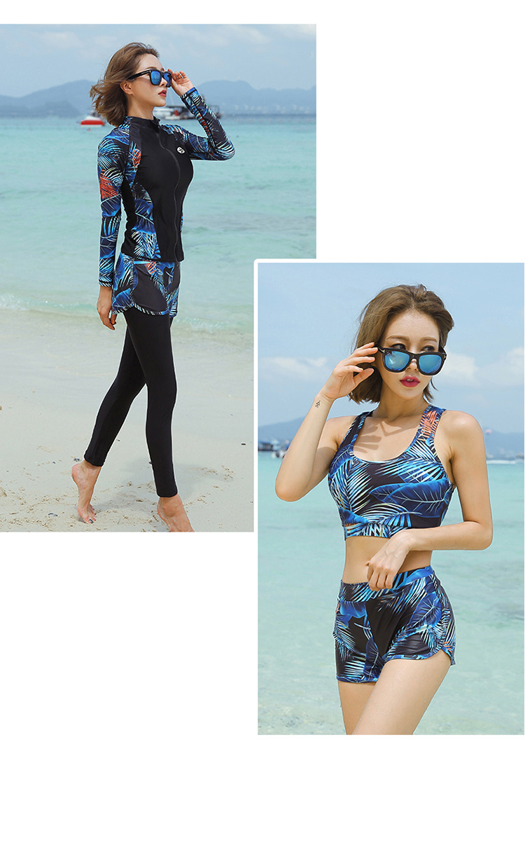 Женская модель включает 5 шт.: 1 рубашка + 1 леггинсы + 1 плавки + 1 комплект бикини (верх и низ)