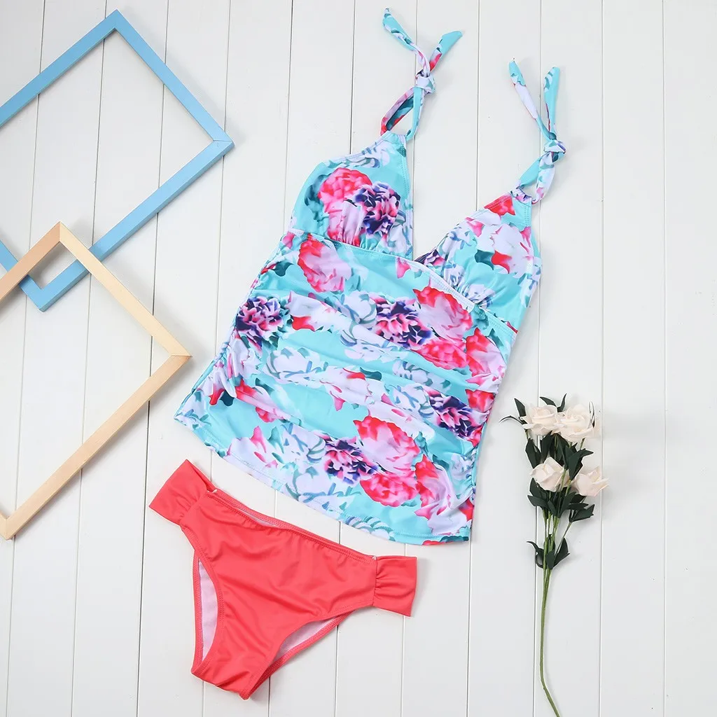 Танкини для беременных женщин с принтом, бандажный купальник с завязками на шее, бикини с лямкой на шее для беременныхПримечание: Пожалуйста, сравните детали размеров с вашими перед покупкой! Используйте аналогичную одежду, чтобы сравнить с размером