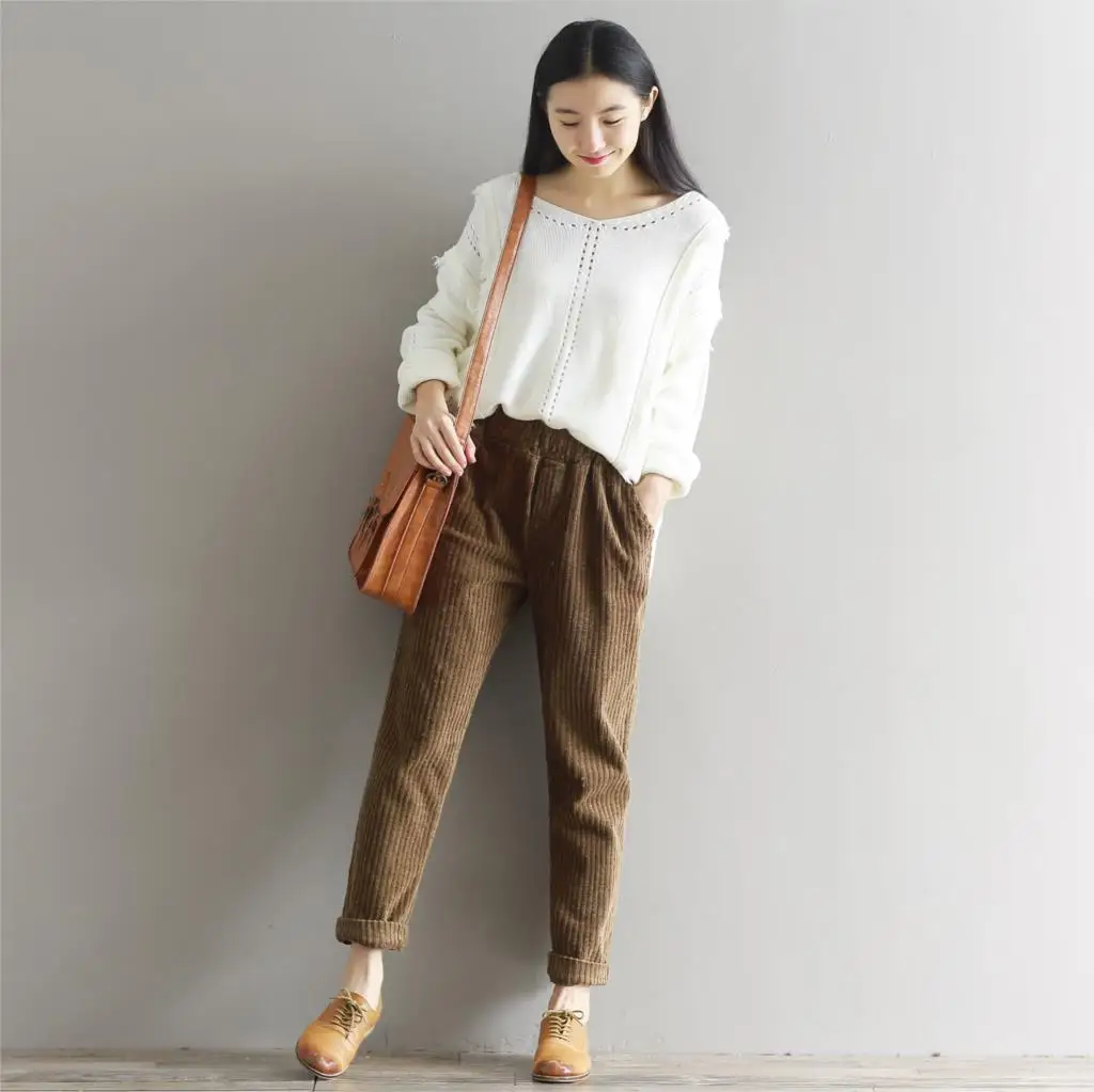 Вельветовые брюки большого размера 3XL, женские прямые брюки с эластичной резинкой на талии, свободные зимние винтажные обтягивающие штаны-шаровары Mori Girl Измерение: (Единица измерения: см)РазмерSМLXL2XL3XLБедра100104108112116120Талия64-9068-9472-9876-10280-10684-110Длина929394959697