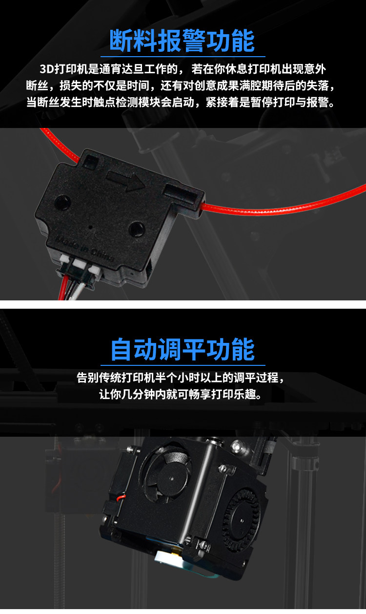 Посылка 2: комплект 3D-принтера + Драйвер 16G U + функция непрерывной печати + автоматическое выравнивание + Датчик накаливания