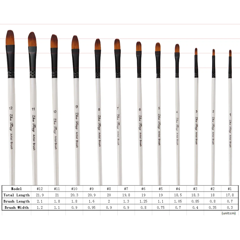 Широкий набор кистей для кистей с размерами в диапазоне от #1 до #12, формы, такие как круглые, плоские, круглые, косые; подходит не только для тяжелой цветной окраски, но и для тонкой детальной живописи.