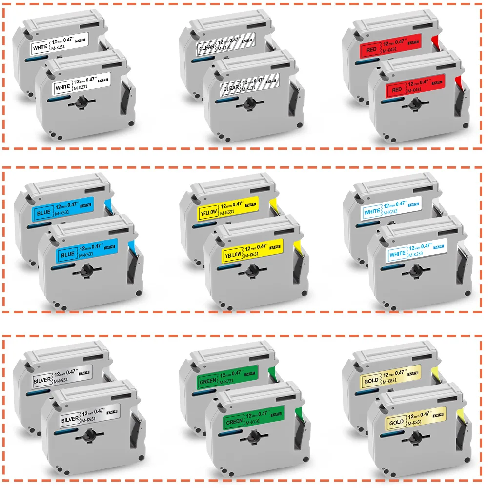 Absonic 2PK 9 мм 12 мм М лента для Brother MK-231 M-231 MK 231 MK-221 лента для этикеток работа для Brother P Touch Label Maker PT-90 PT80