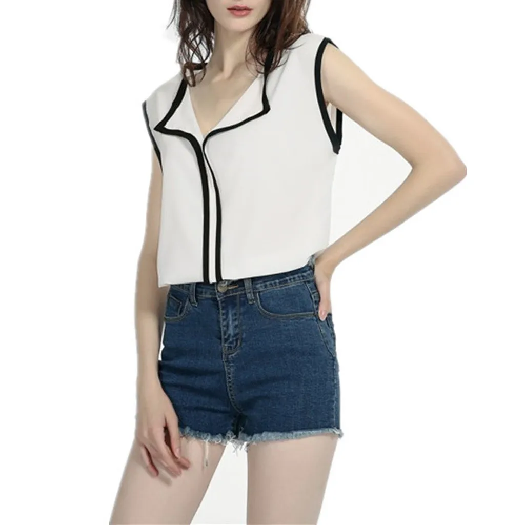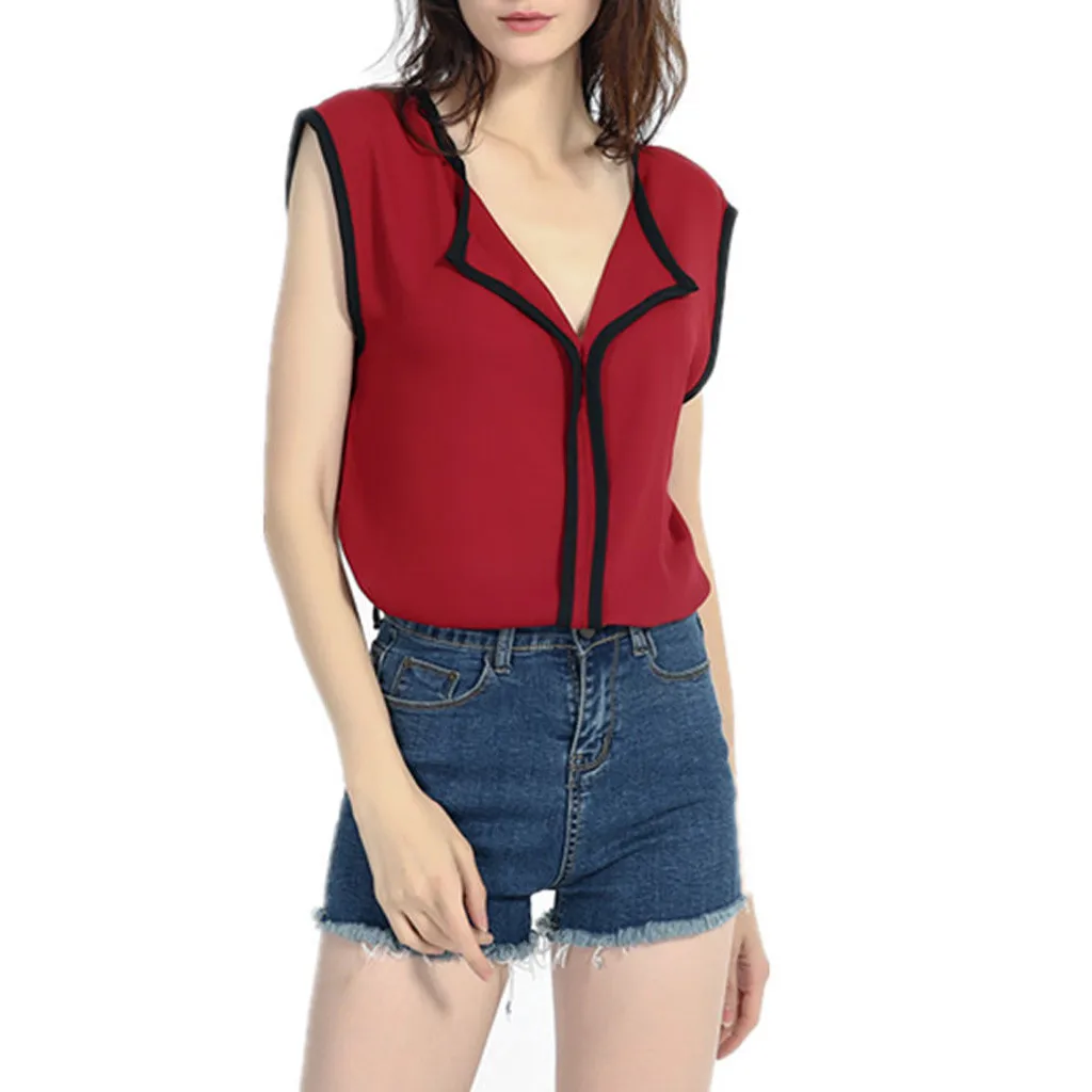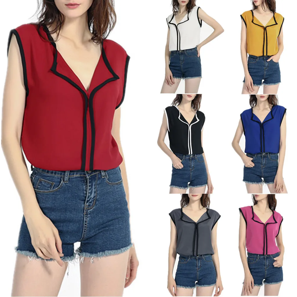 Женская шифоновая блузка без рукавов с v-образным вырезом