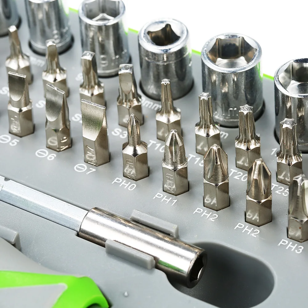 С 39 видами бит: 9 гнезд с разъемом и 29 различных видов хромванадиевой стали отвертки и с самой высокой твердостью после закалки термической обработки строго выбраны для удовлетворения всех ваших потребностей.