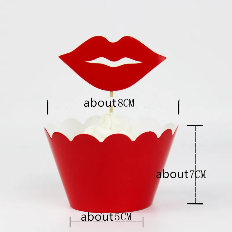 24 шт./лот, сексуальные красные губы, свадебные вечерние принадлежности, обертки для кексов, топы для детей, вечерние украшения на день рождения, вставки для торта