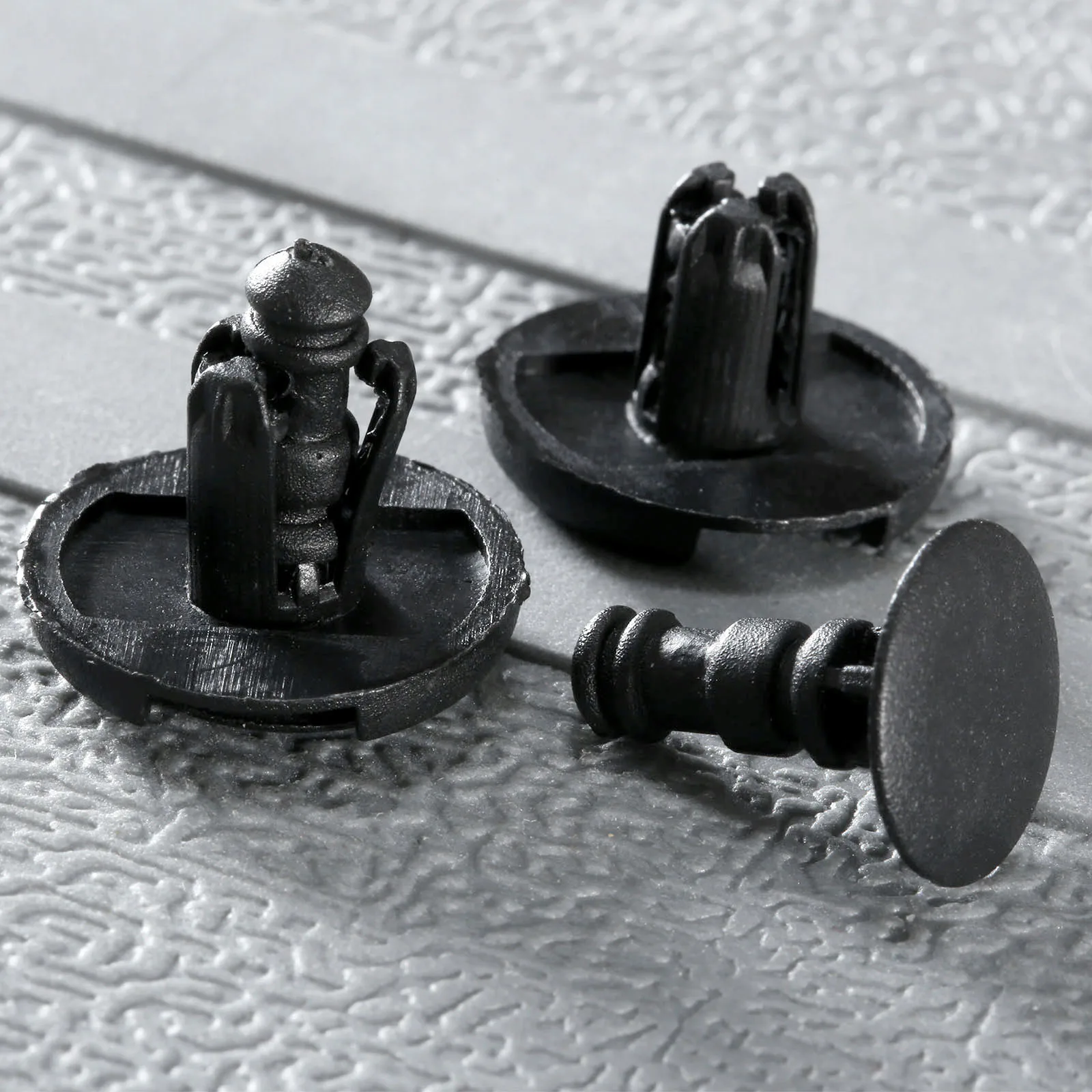 100% новый товар высокого качества. Материал: помпон. Цвет: черный Размер посадочного отверстия: 7 мм/0,28" Длина штока: 10 мм/0,39 ". Диаметр головки: 20 мм/0,8" Подходит для Suzuki Alto.Комплектация:Заклепки Пластиковые 50 шт.
