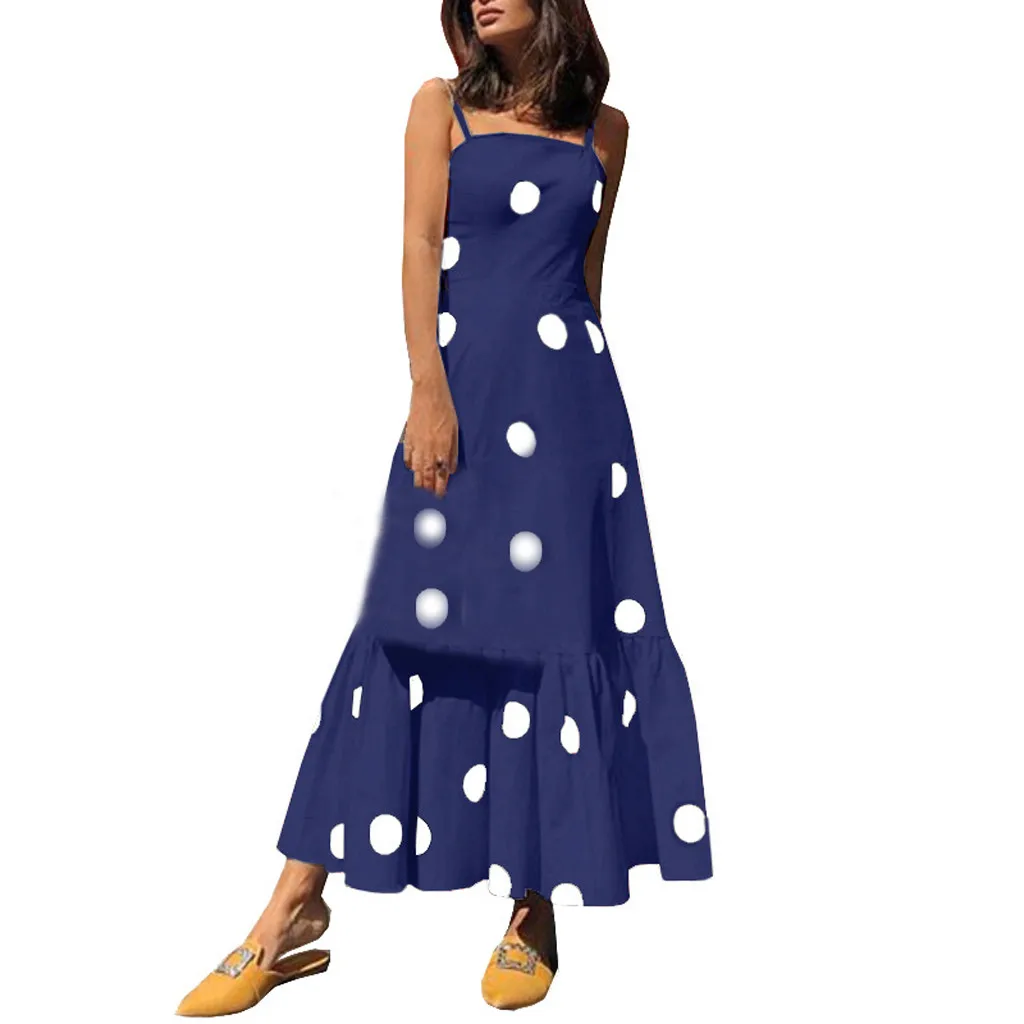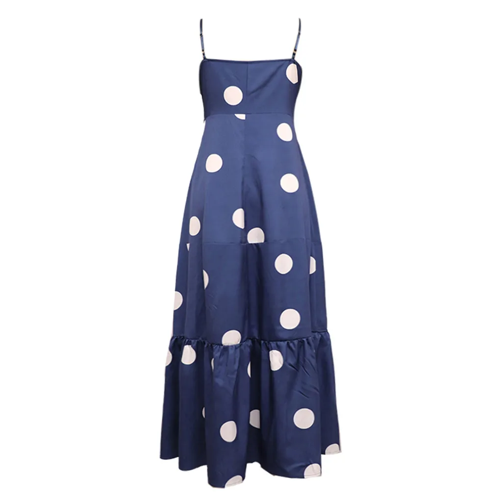 Женское летнее богемное длинное пляжное платье в горошек с завязками