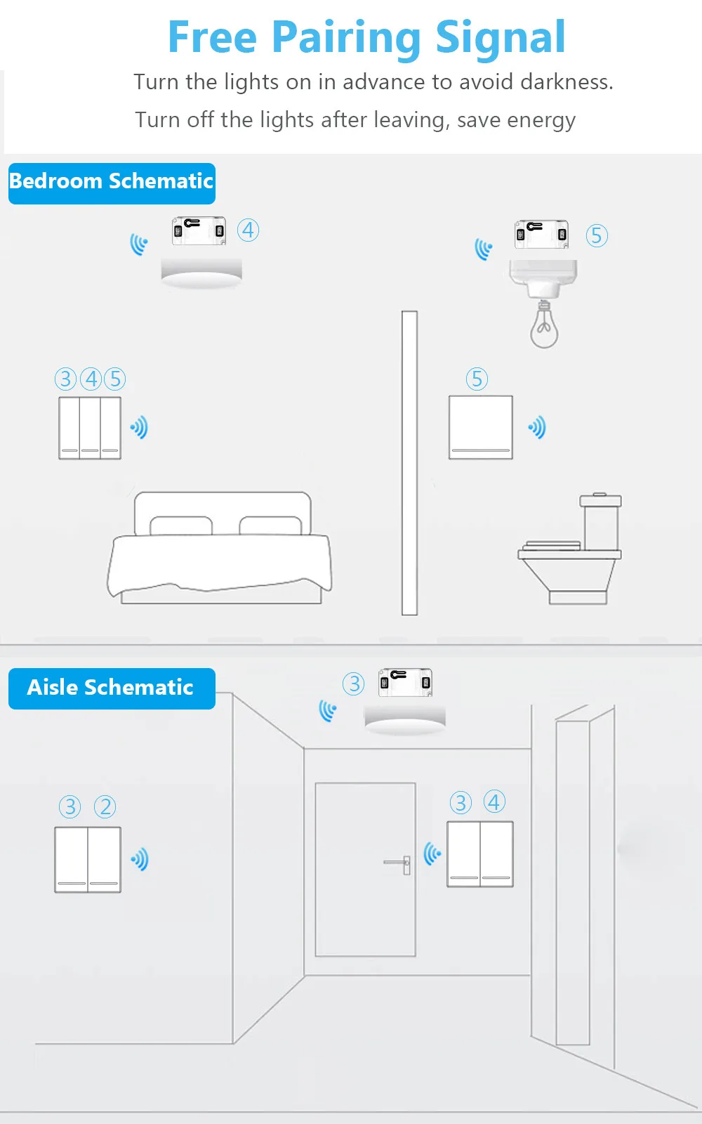 1. Включите свет заранее, чтобы избежать темноты. 2. Выключите свет после выхода, экономьте энергию