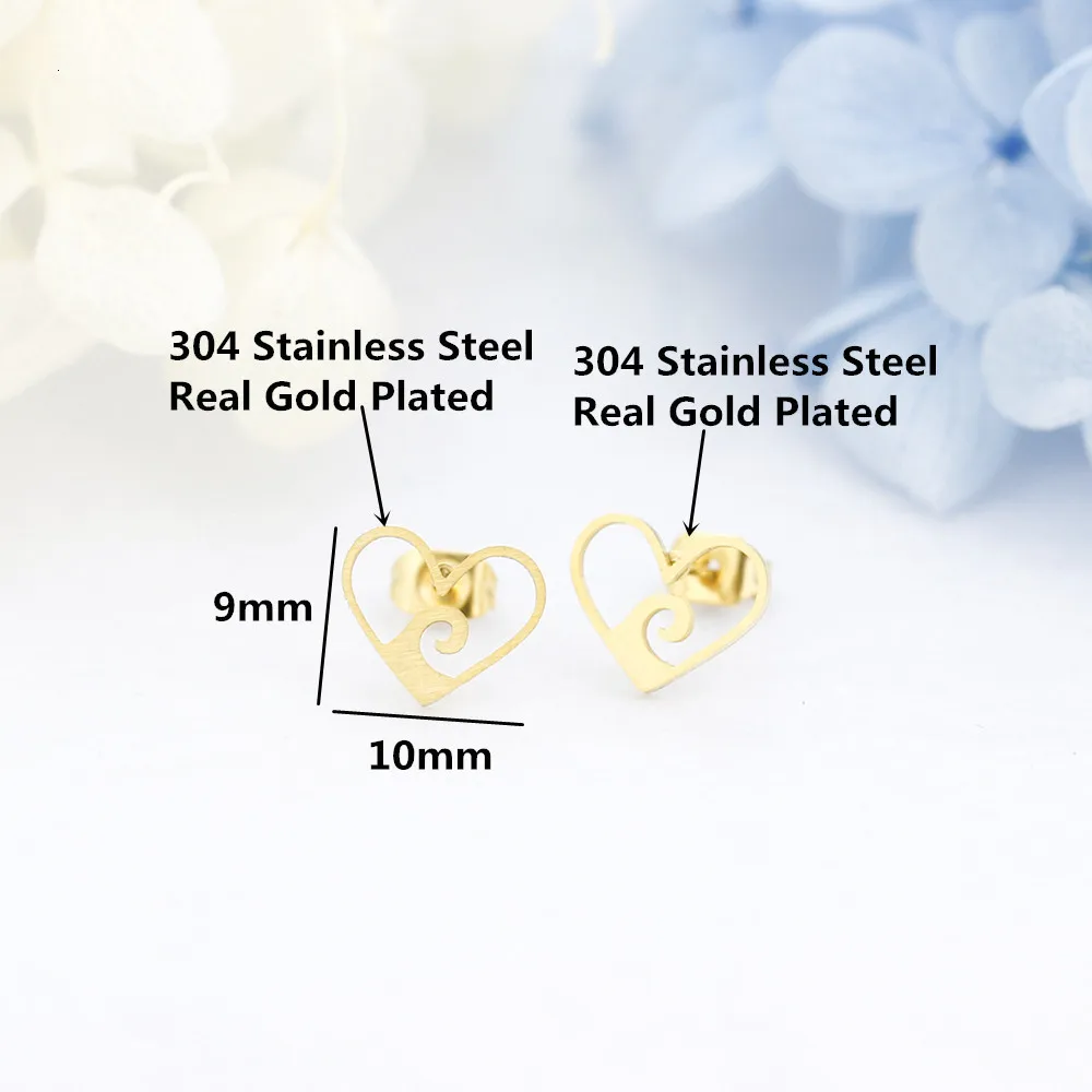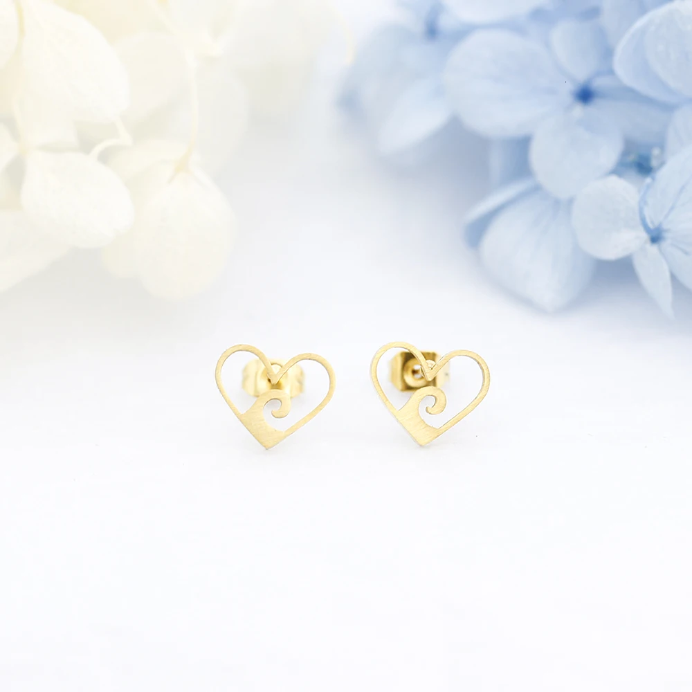 Женские серьги-гвоздики в форме сердца, модные ювелирные изделия из нержавеющей стали, розовое золото, цвет волны океана, женские серьги, лучшие подарки для женщин