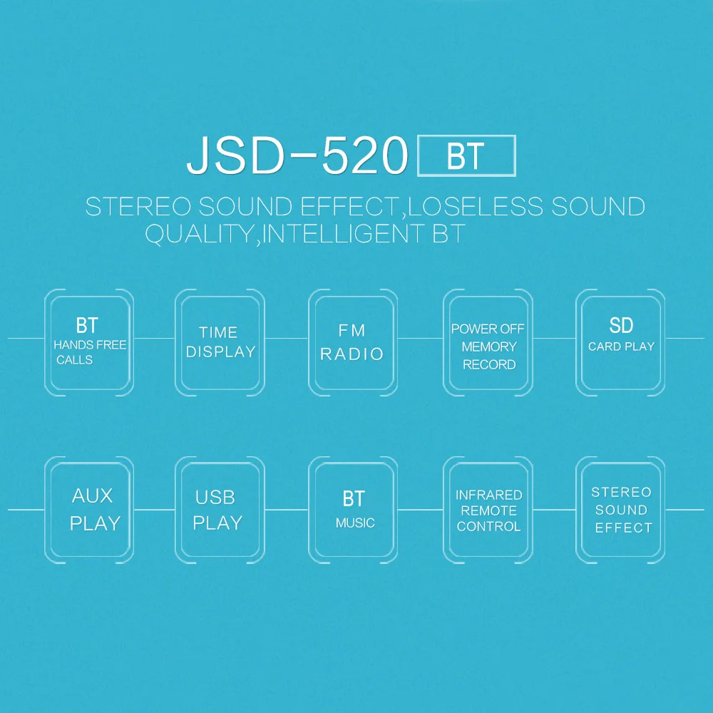 Поддержка воспроизведения BT, u-диска, sd-карты, AUX в нескольких режимах воспроизведения, аудиовыход RCA.
