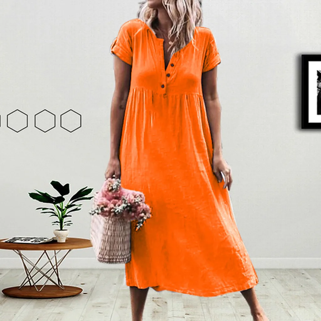Женское повседневное однотонное платье с v-образным вырезом на пуговицах