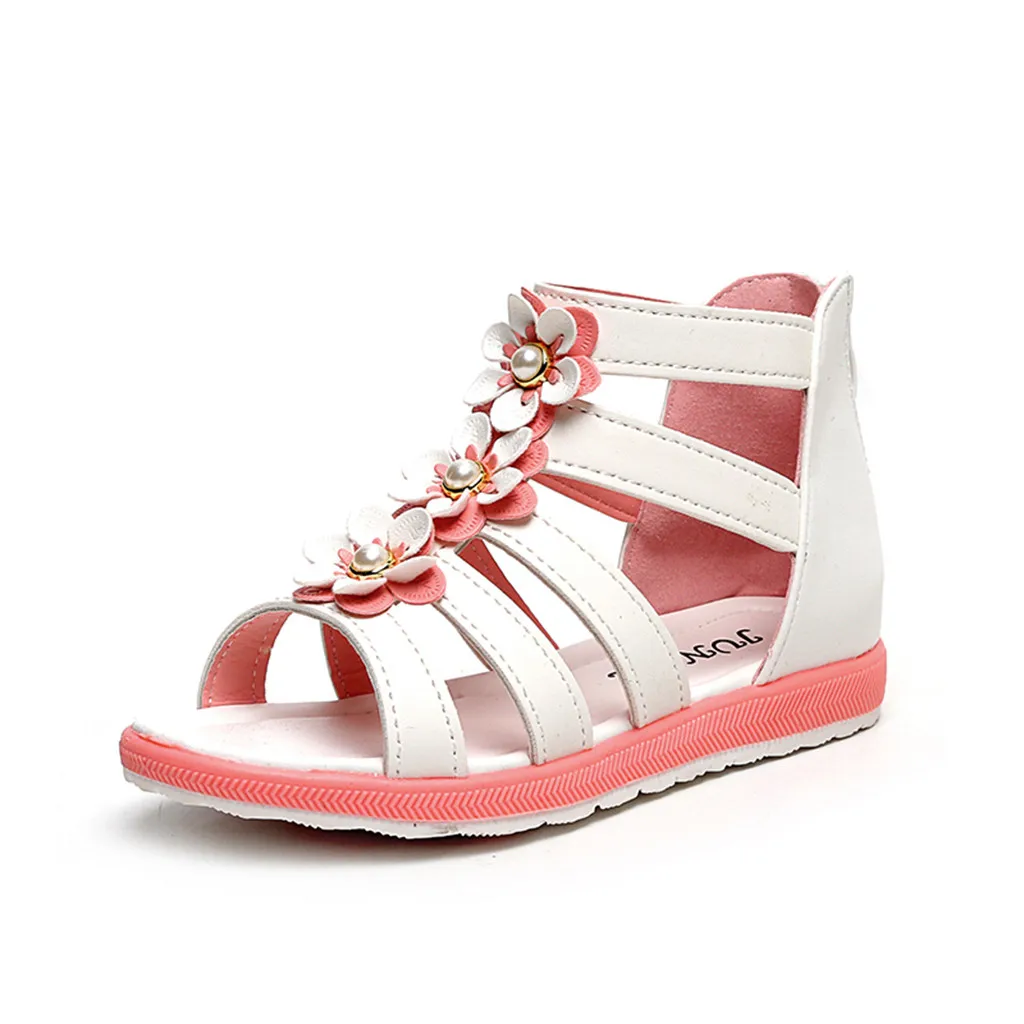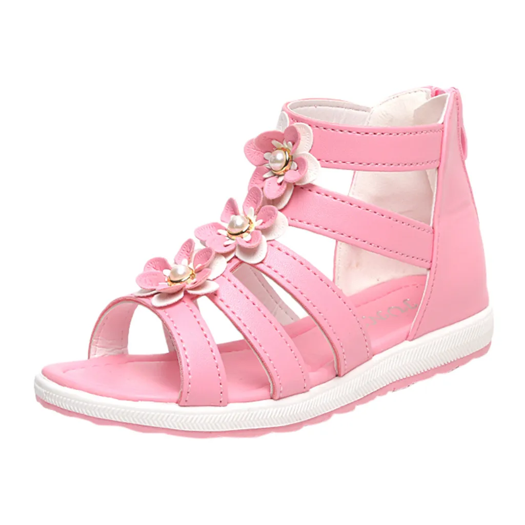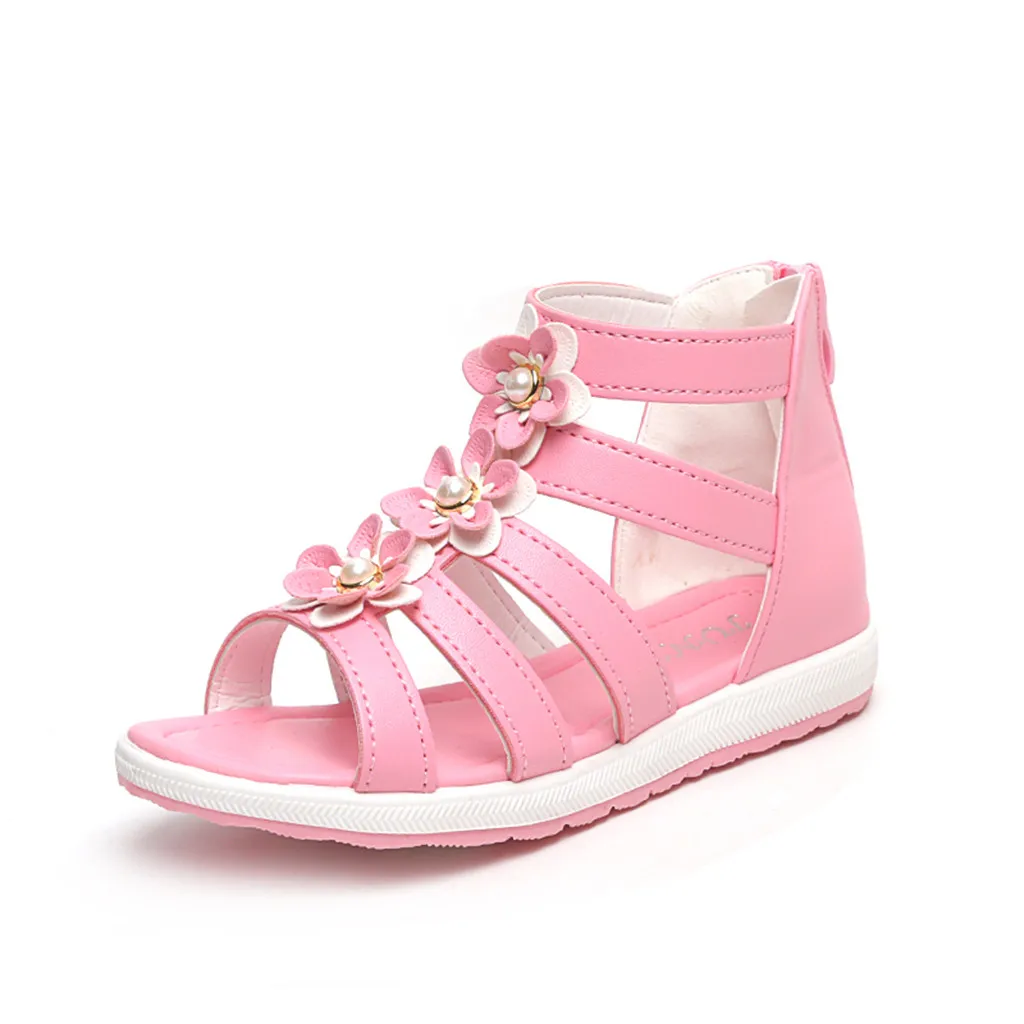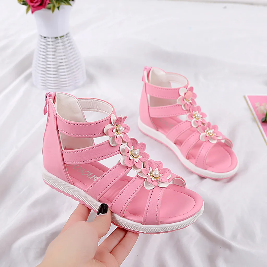 Детская обувь для маленьких девочек с жемчужинами и цветами; одиночная обувь для принцессы сандалии