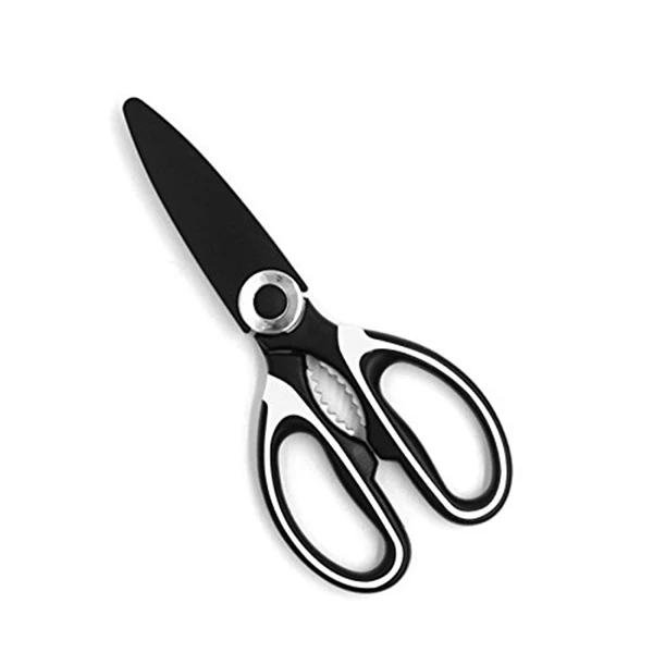 (Multi-function)kitchen shears can help you more than any other tools in the kitchen area. The functions it has are as the followings: cutting meat, chicken, poultry bones, vegetables, nutcracker, bottle opener, and scraper for fish scales. Not only performs well for kitchen tasks, but also daily use: cutting cardboards, papers, hard plastic of product boxes, trimming rose stems. You want to use it everywhere and you can.