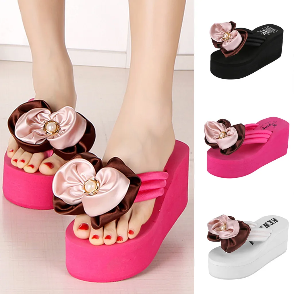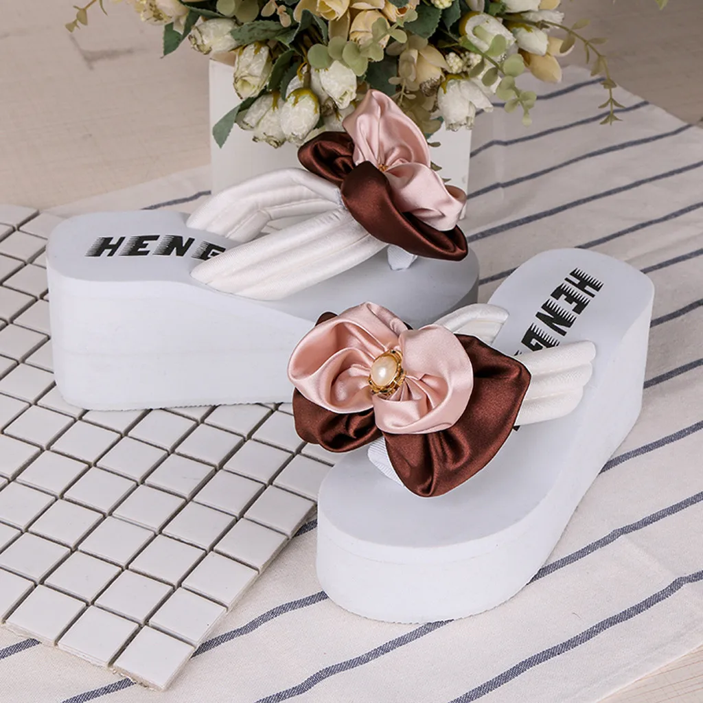 Летние женские шлепанцы с бантом на танкетке, вьетнамки на плоской подошве, модная пляжная обувь на ремешках
