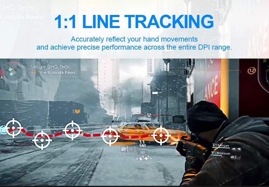 Точно отражает движения рук и обеспечивает точную производительность во всем диапазоне DPI
