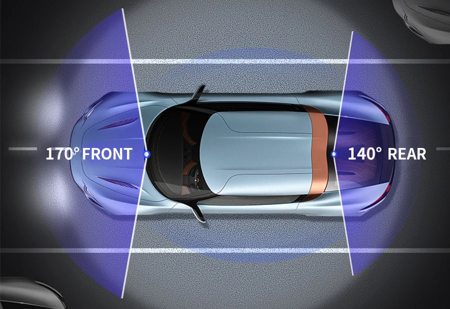 A31 поддерживает два объектива камеры, объектив фронтальной камеры составляет около 170 Drgree широкоугольный, а объектив задней камерыоколо 140 градусов. поддержка изображения в дисплее изображения, два объектива камеры записываются одновременно, все видео сохраняет в TFкарте. при движении задним ходом видеорегистратор автоматически поворачивается к заднему дисплею изображения.