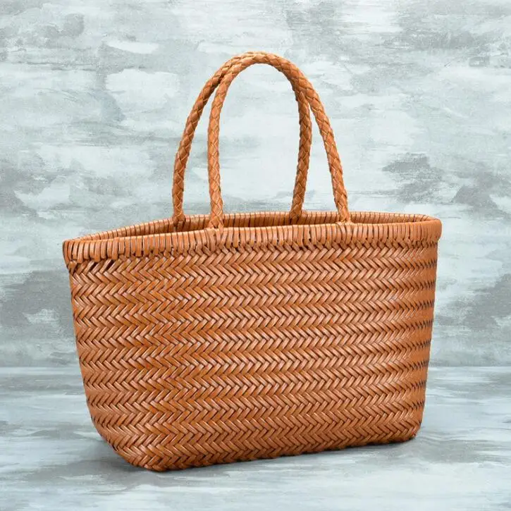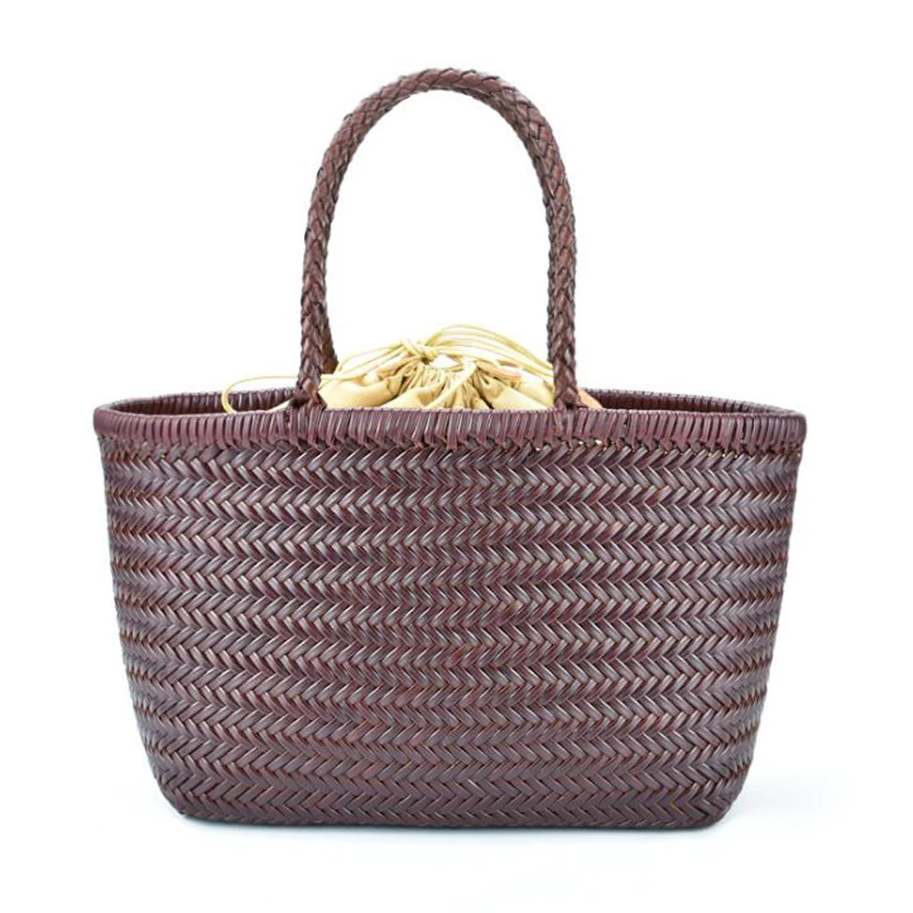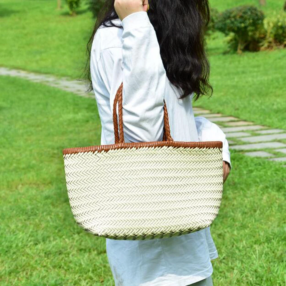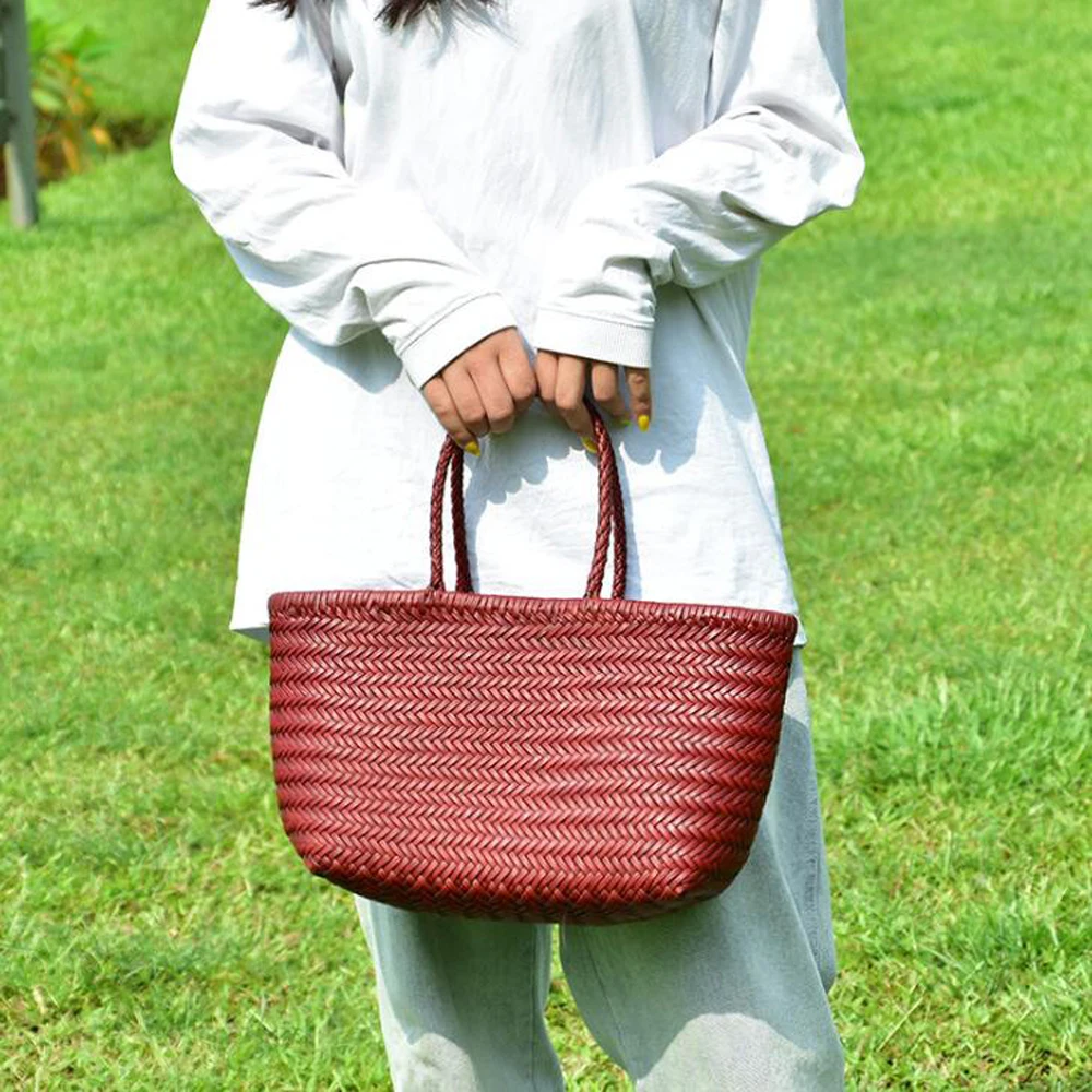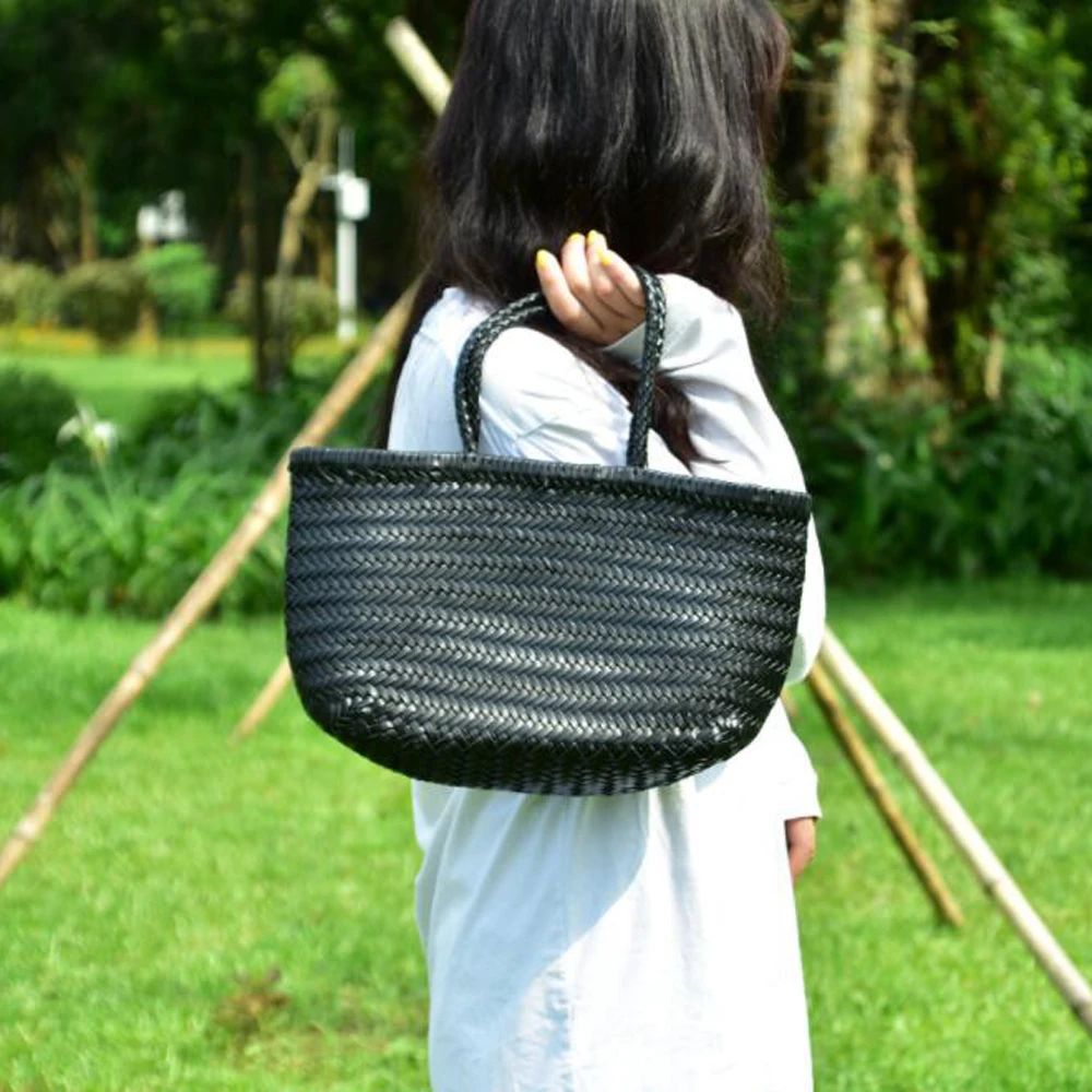 Женские прочные кожаные плетеные сумки, Женская Ручная тканая сумка-ведро с хлопковыми карманами, Повседневные вязаные кожаные сумки-купе