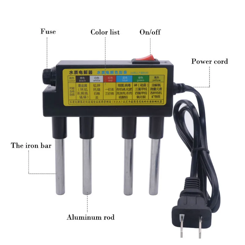 Электролизер качества воды предоставляет нам простой и дешевый способ проверки качества воды. Для проверки качества воды, вам нужно взять две чашки (100 ~ 150 мл, прозрачный, одна чашка хорошо держит или водопроводная вода, другая чашка держит очищенную воду) И выбросов на столе. Затем поместите два конца инструмента в две чашки, нажмите кнопку, тест начинается. Обычно время тестирования составляет 30 секунд.