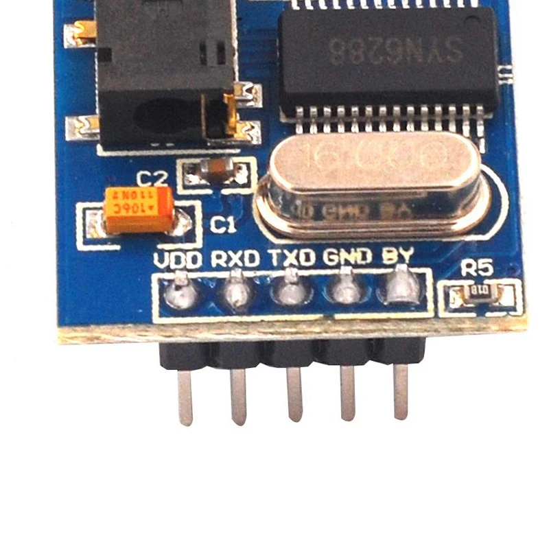 Этот модуль имеет стандартный аудиоинтерфейс 3,5 мм, который может быть подключен к аудиоустройствам и устройствам усилителя мощности. Резервный интерфейс динамика может непосредственно управлять динамиком 8 евро 0,5 Вт.