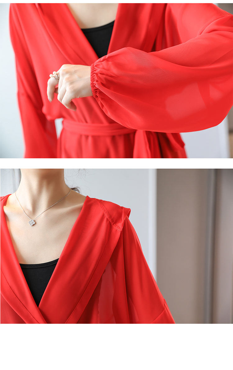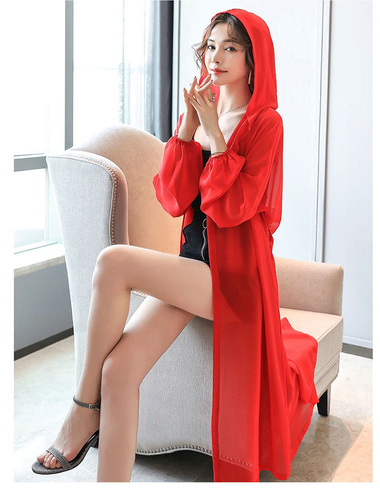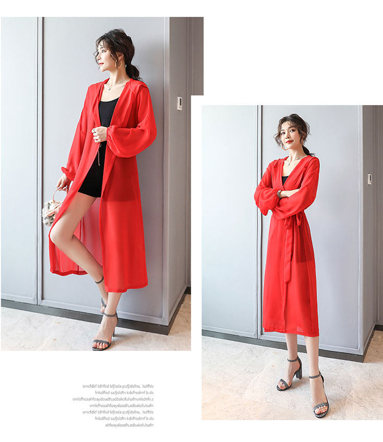 Женское шифоновое кимоно большого размера, кружевное тонкое пальто с вырезами, длинные красные кимоно LJ596, лето 2019