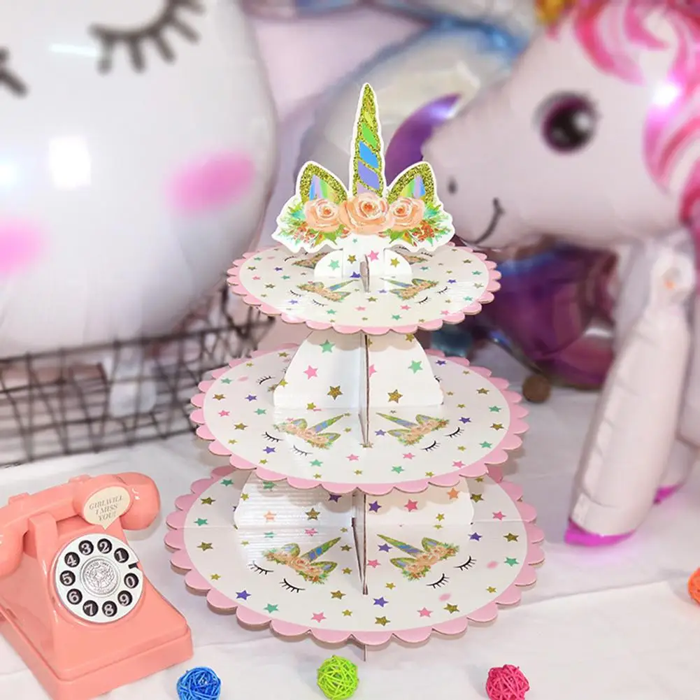 3 яруса кружевных Единорог картон торт DesSert Cupcake Holder для детского душа, вечерние украшения для торта