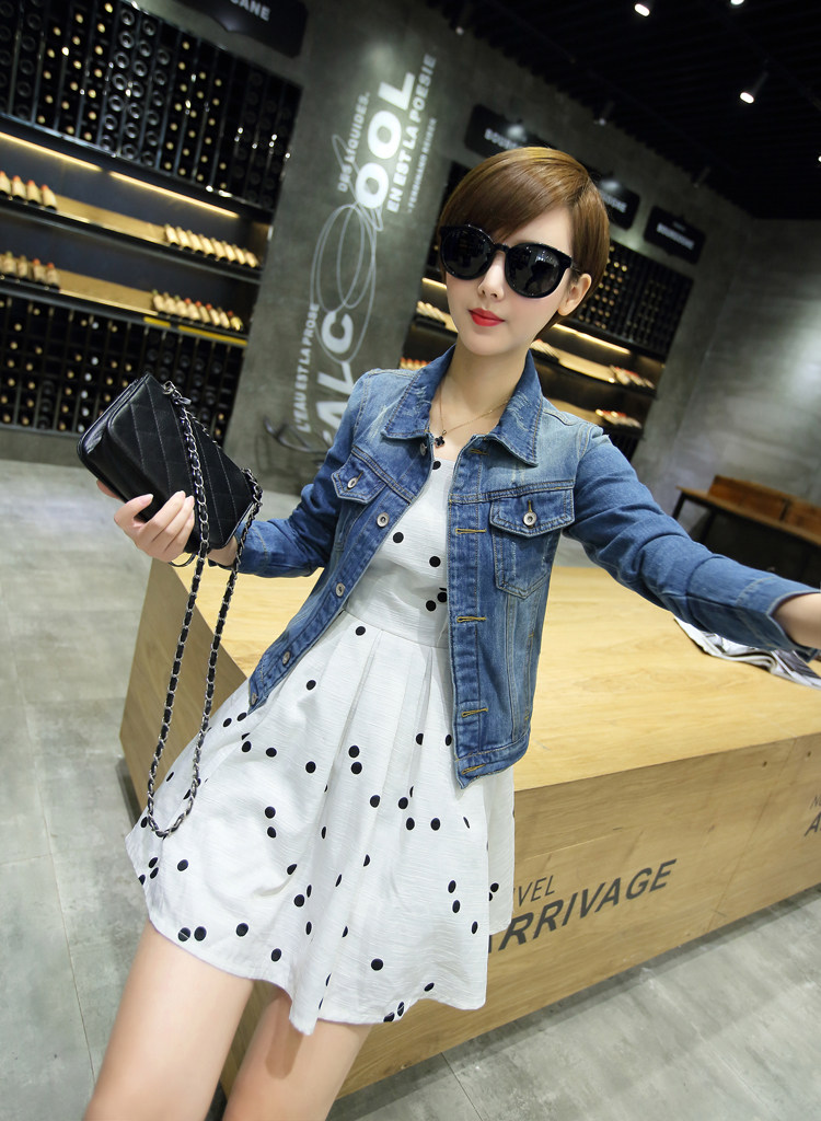 Women Autumn Summer Denim Short Jacket Vintage Streetwear Coat Female Jeans Jacket Blue Long Sleeve Pockets Jackets Outwear LJ631