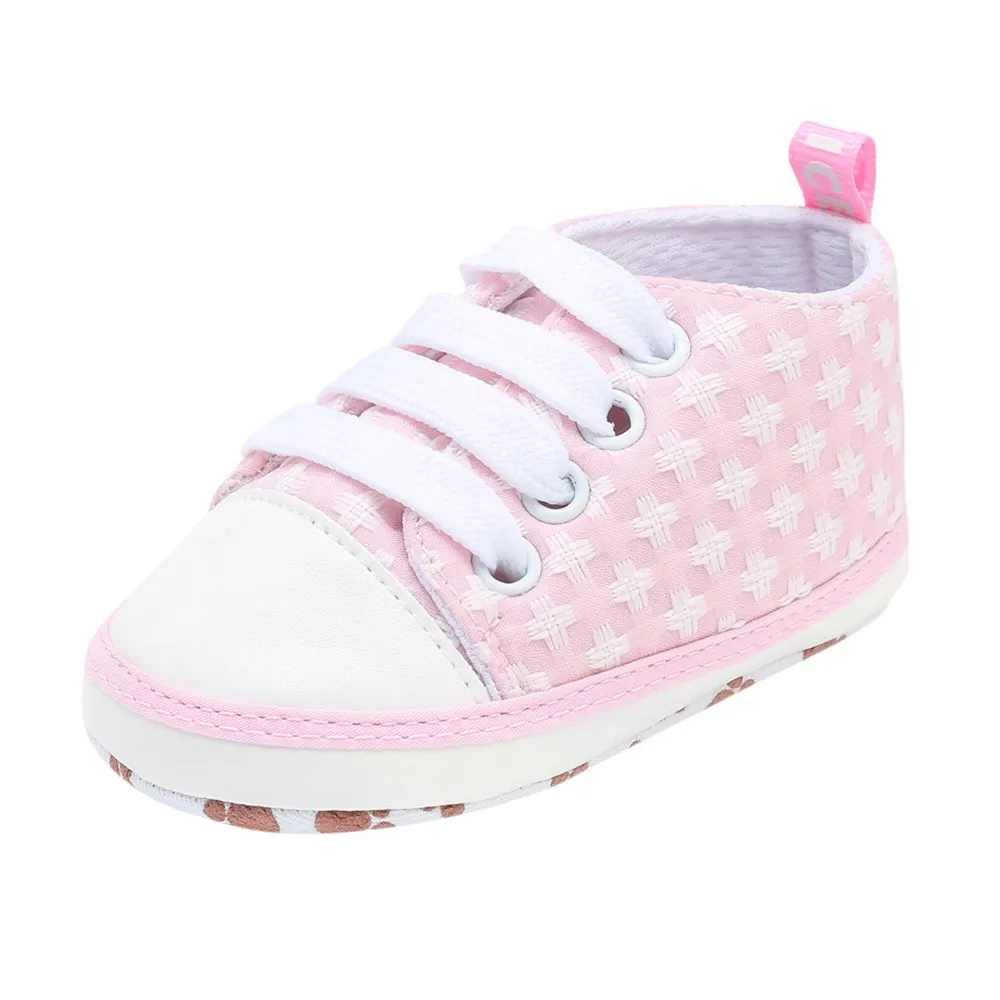 Новорожденный малышОднотонная мягкая подошва с геометрическим принтом для маленьких мальчиков и девочекПовседневная обувь