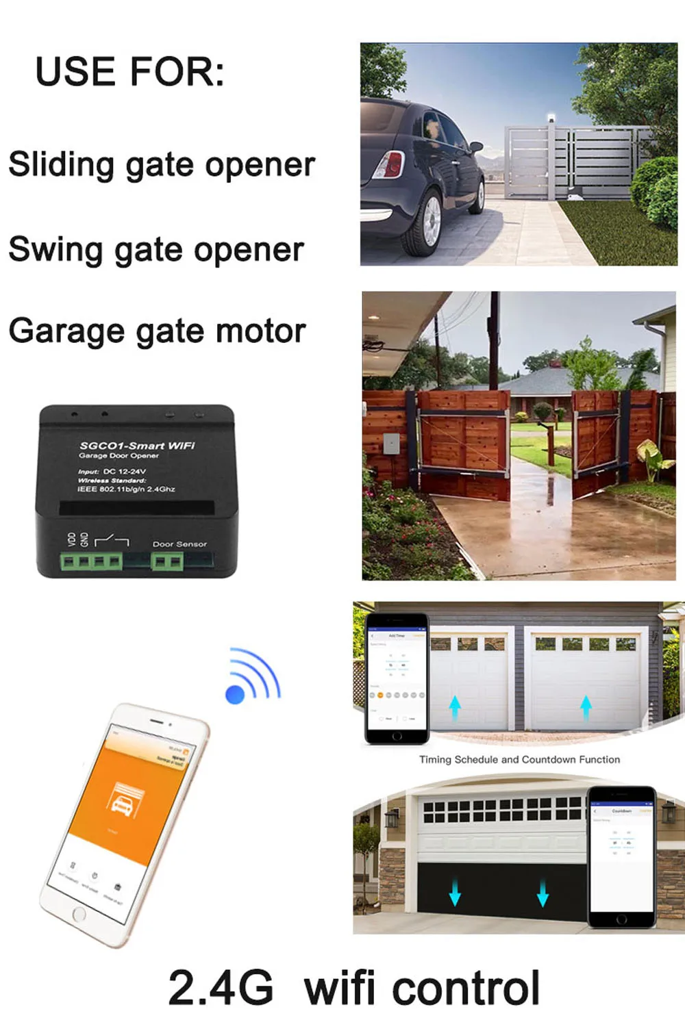 Загрузите модуль Wi-Fi, вы можете управлять открыванием двери непосредственно на мобильный телефон в приложении. Дистанционное управление, не ограничено расстоянием, необходимо убедиться, что устройство подключено к сети, поддержка беспроводной сети 2,4G