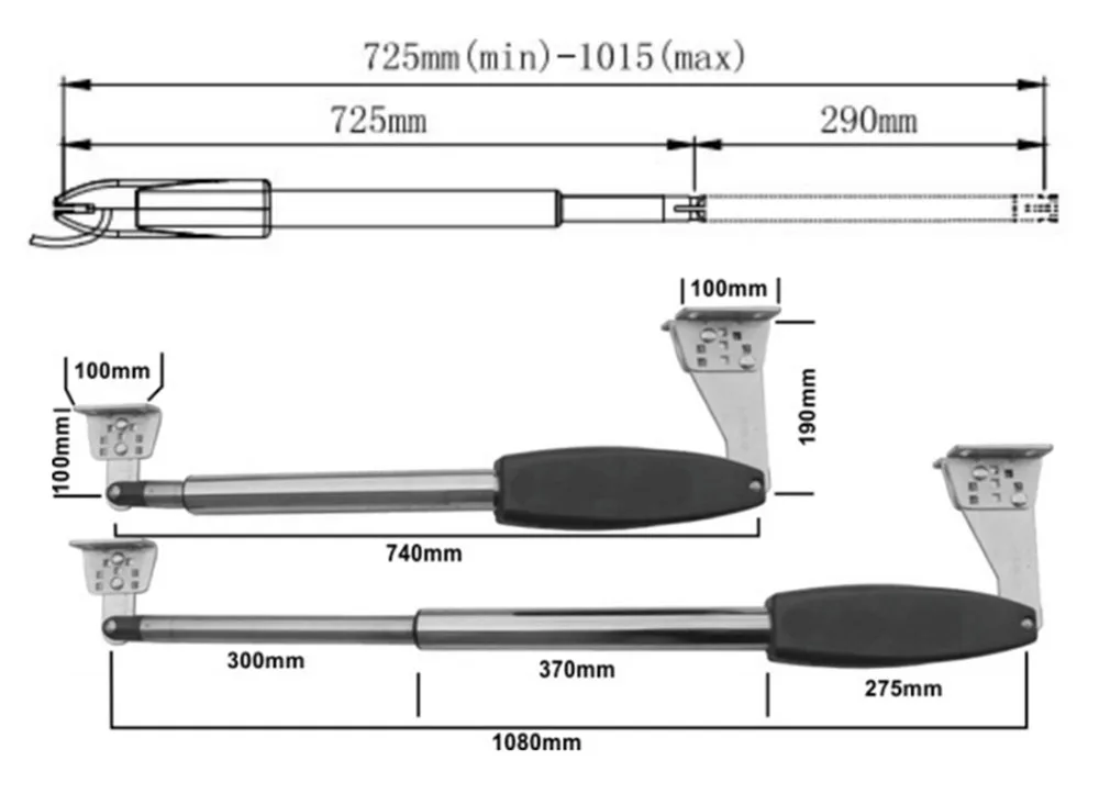 1. Простота установки и эксплуатации и простота подключения к проводу. 2. Откройте и закройте ворота с помощью пульта дистанционного управления и клавиатуры. 3. Функция стимуляции времени. Когда открываете ворота, скорость медленная, затем немного быстрая, и когда закрываете дверь, скорость снова медленная. 4. В чехол сбоя питания, отпустите сцепления легко, и может работать в ворота вручную. 5. Прекратите работать, когда ворота встречают препятствия. 6. Максимальная ширина стержня составляет 300 мм. 7. Порошка двигателя: 24VDC 40W 8. Бег Скорость: 1,6 см/с 9. Путешествия: 300 мм 10. Максимальная ширина одинарных ворот: 4 м 11. Максимальный вес одиночных ворот: 400 кг 12. Поддержка внутреннего и внешнего открытия 13. Поддержка DIY. Рекомендуется для тяжелых ворот.