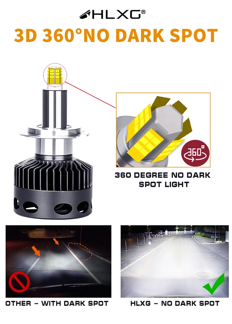 1. Супер яркость со всеми 6 линиями 12 сторонней светодиодной лампы, 360 градусов освещения, нет темного пятна, нет слепой зоны.