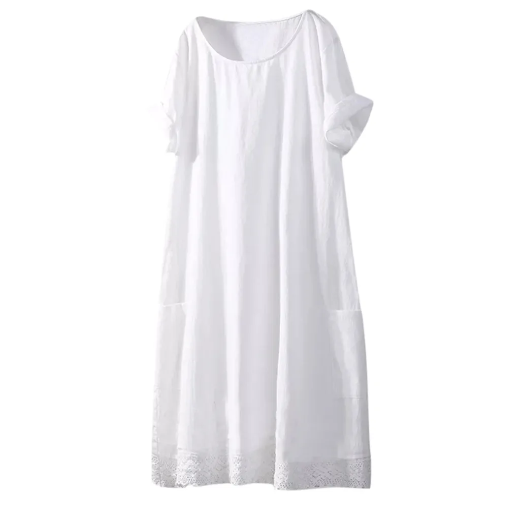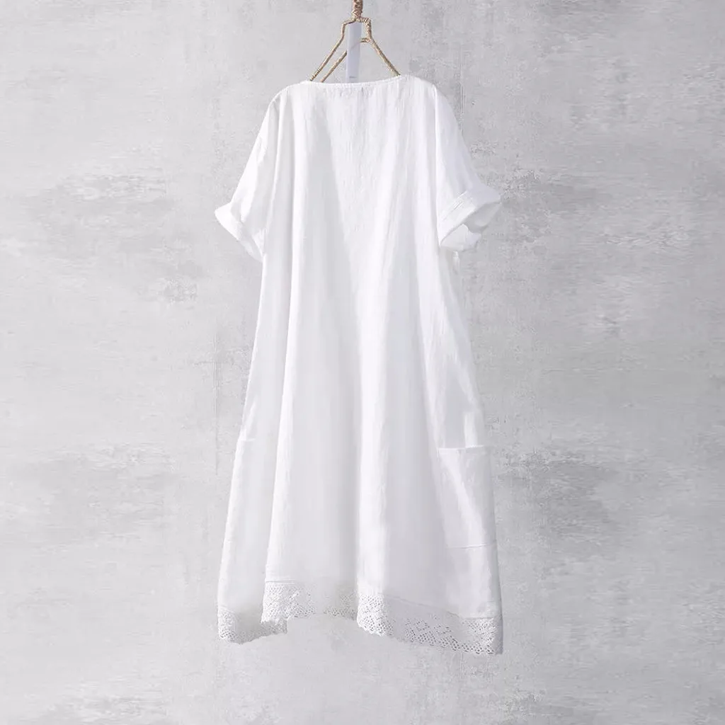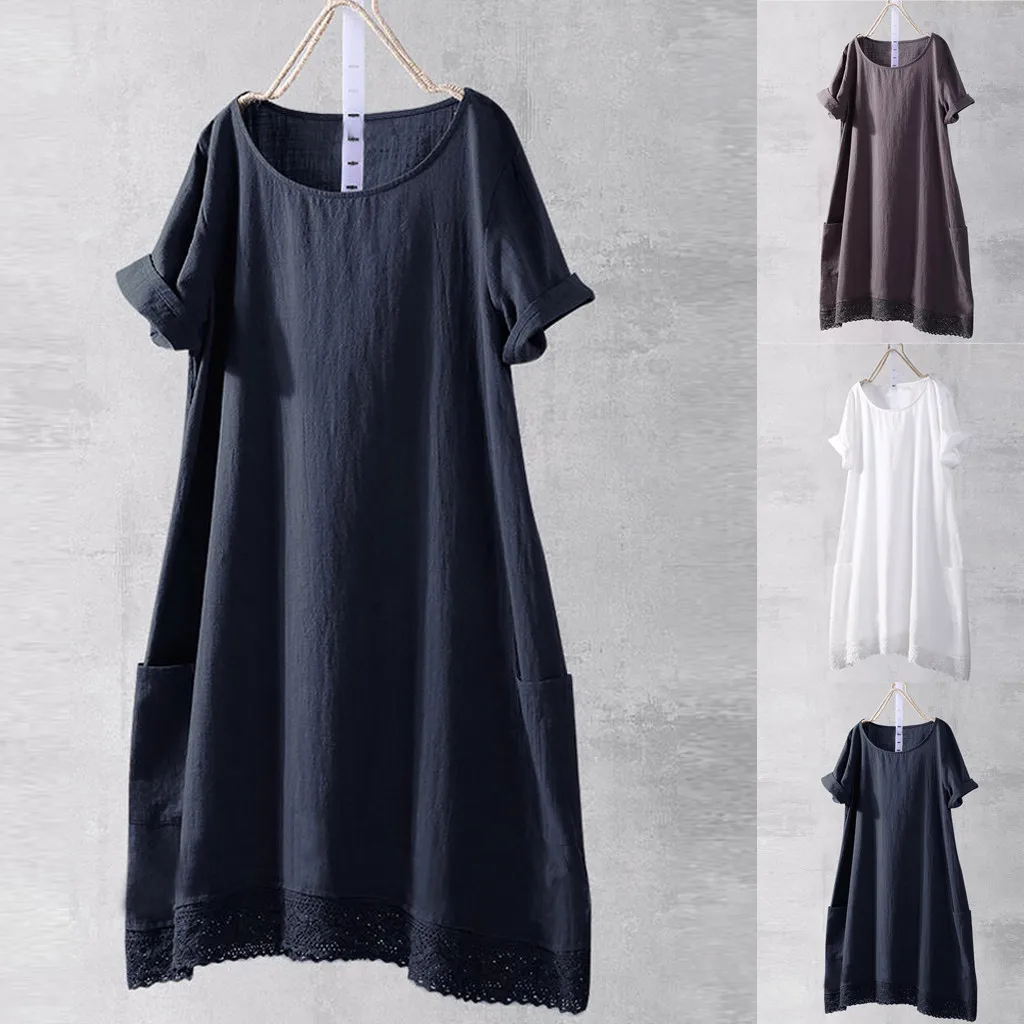 Женские кружевные лоскутные хлопковые льняные повседневные винтажные топы с круглым вырезом и коротким рукавом