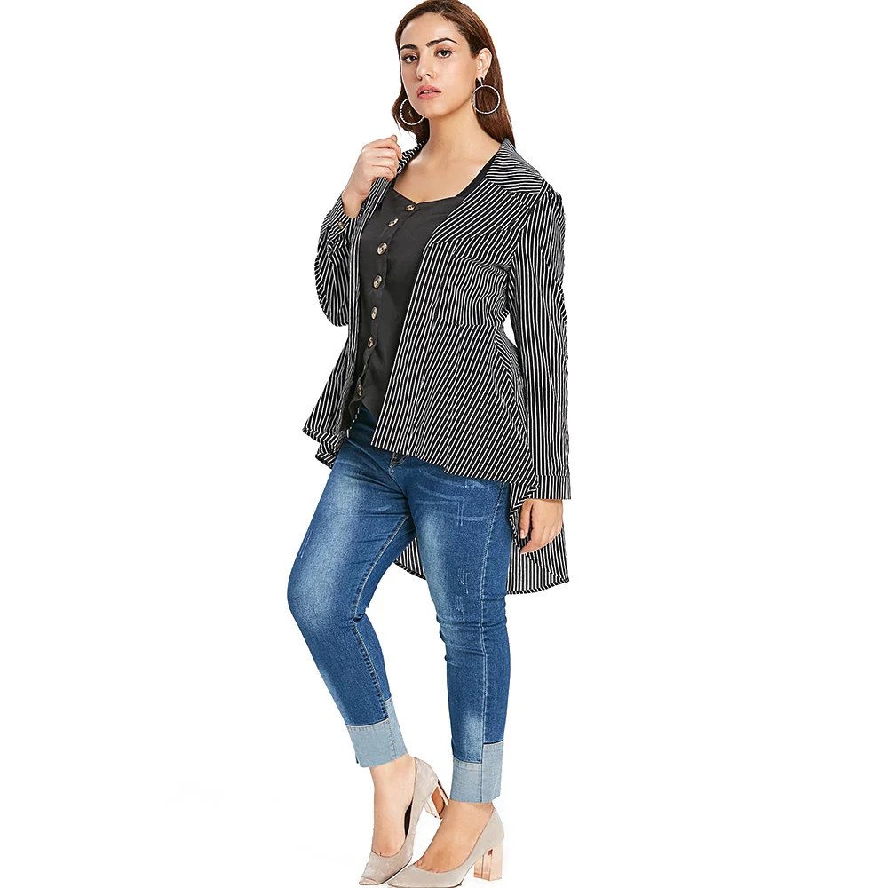 Женская блузка размера плюс с высокой низкой пуговицей в стиле ретро, модная полосатая рубашка, хлопковая длинная туника, свободные женские топы и блузки, Топ для женщин